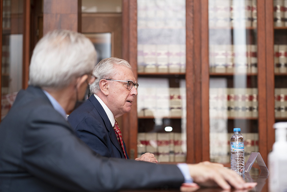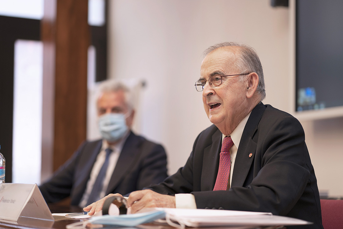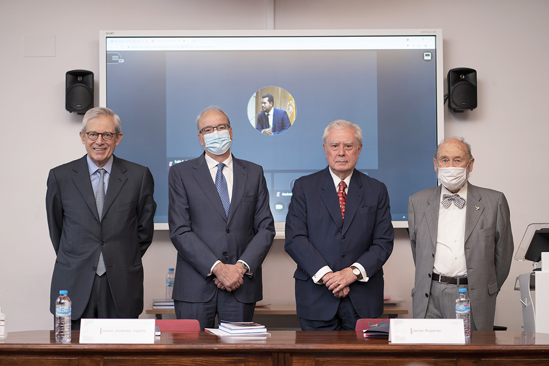 Acompañado de Javier Jiménez-Ugarte, exsecretario general de la Secretaría General de Política de Defensa (SEGENPOL), Javier Rupérez analizó el impacto de la covid-19 en la economía, la sociedad, la política y la vida diaria de las naciones. “Realmente –expuso- ha condicionado nuestra vida hasta el punto de no poder estrechar la mano con otra persona”.