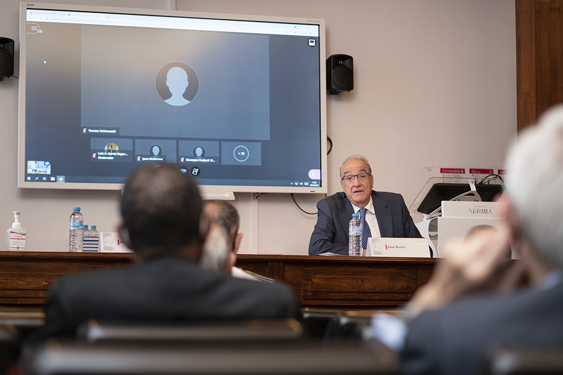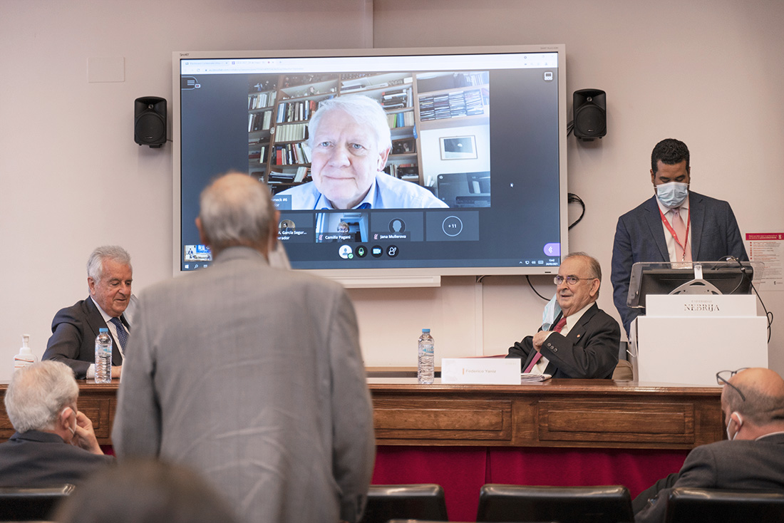 Con el orden establecido por Jesús Martín Ramírez y Luis A. García Segura, coordinador de la Cátedra Global Nebrija-Santander en Gestión de Riesgos y Conflictos, la sesión inaugural corrió a cargo del diplomático Javier Rupérez, que entre otros cargos, fue embajador ante la Conferencia sobre la Seguridad y Cooperación en Europa (1979-1982), embajador de España en la OTAN y en las Naciones Unidas, embajador de España en los Estados Unidos (de 2000 a 2004) y secretario general adjunto del Consejo de Seguridad de las Naciones Unidas.