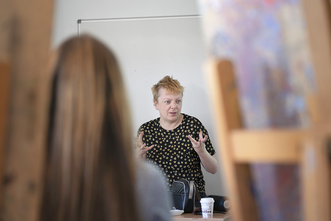 El encuentro ha tenido un carácter doble, formativo y colaborativo. En el aula, Vargas, a partir de sus propuestas artísticas, les ha planteado una reflexión sobre el canon corporal y el estudio del cuerpo en las diferentes disciplinas. A lo largo de esta actividad, la artista ha posado como modelo para plantear unas clases de dibujo “inclusivas”, para visibilizar la enfermedad-herida, y para mostrar su prótesis y plantear a los estudiantes de moda la posibilidad de trabajar con y para “cuerpos no normativos”.