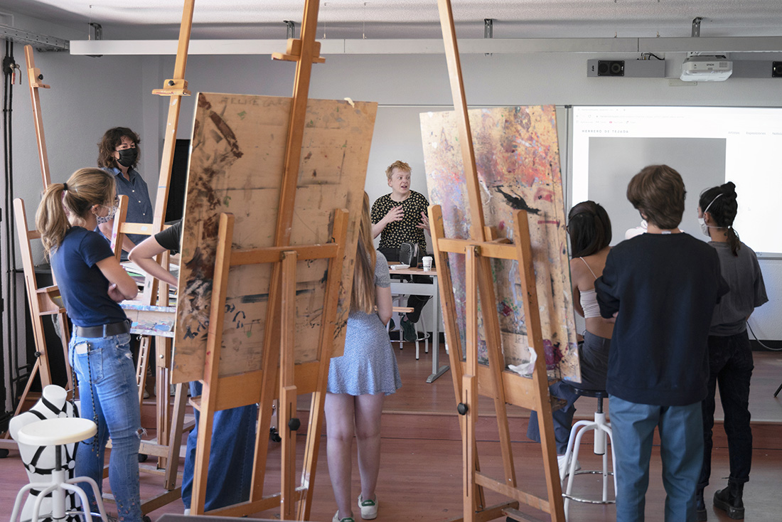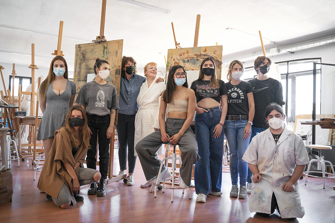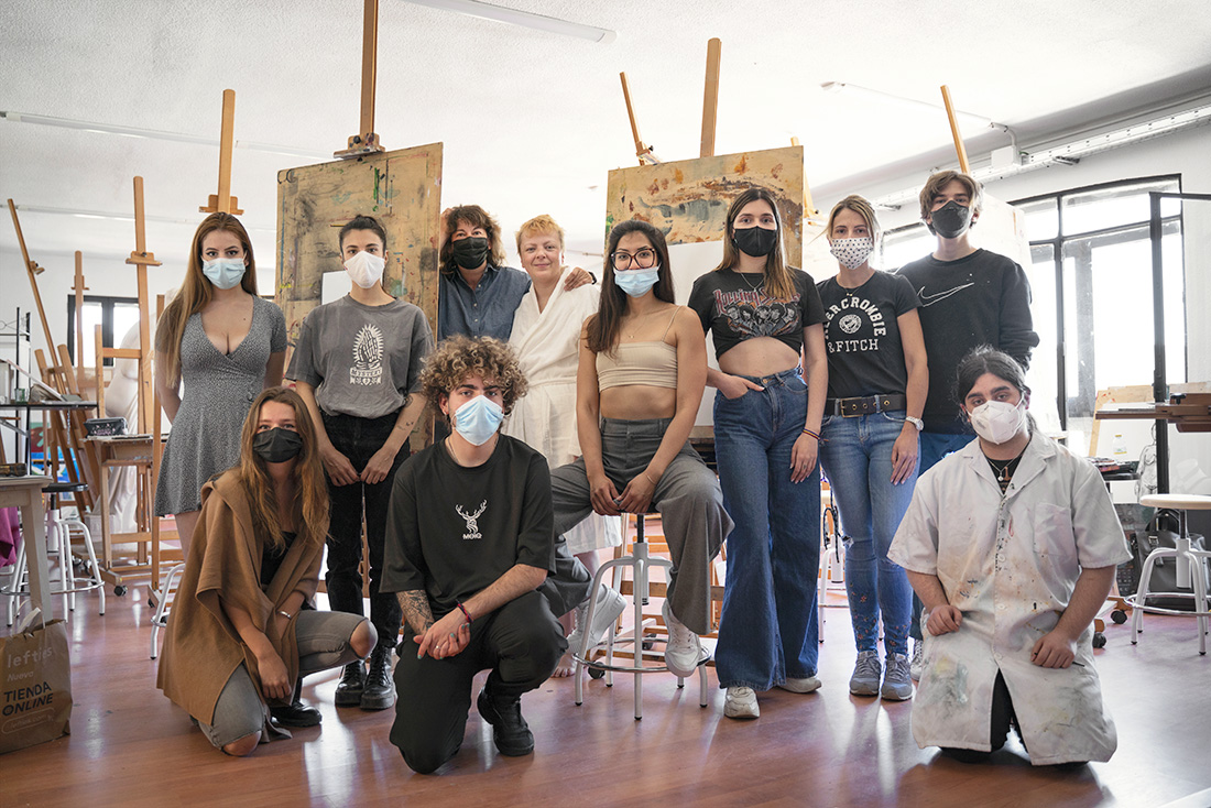 La artista Marina Vargas ha visitado la Facultad de Comunicación y Artes de la Universidad Nebrija para realizar una actividad muy especial con los alumnos de primer curso de los Grados de Diseño de Moda y Bellas Artes. Vargas estuvo acompañada de la profesora Sara Quintero.