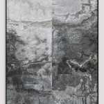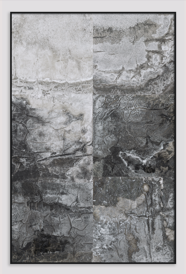 N.I.N.E.S. (Numerical Images Naming Extraterrestial Seas), 2021, es el resultado de un proceso de evaporación de agua salada y tinta china sobre las balsas de plástico que se usan como abrevaderos en Guadalajara.