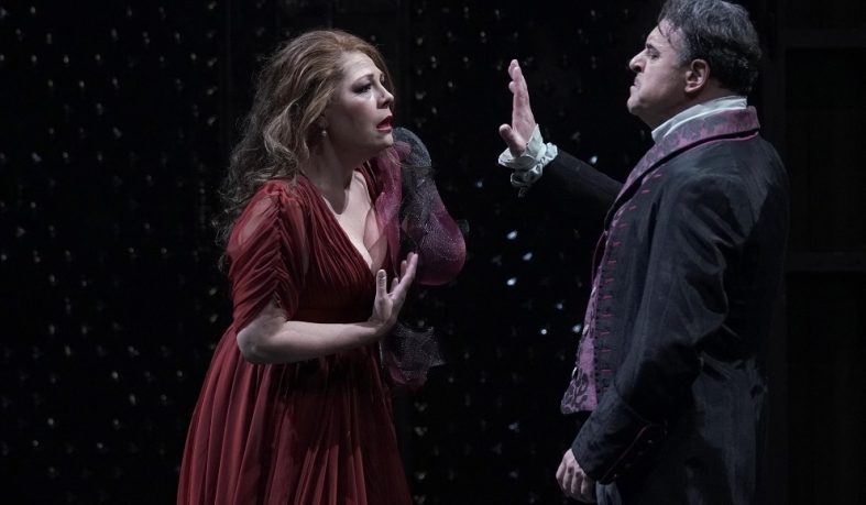 Foto de Tosca: © Javier del Real | Teatro Real. Sondra Radvanovsky (Floria Tosca) y Carlos Álvarez (Barón Scarpia)