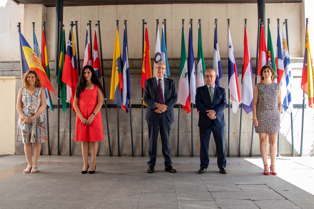 Mariano Jabonero, secretario general de la OEI, y José Muñiz, rector de la Universidad Nebrija, han suscrito los acuerdos en un acto en la sede de la OEI en Madrid, en donde además han participado Ana Capilla, directora de Educación Superior y Ciencia de la OEI; Saloomeh Yousefian, directora de Desarrollo Internacional de la Universidad Nebrija; y Miriam del Castillo, directora de Desarrollo para América del Sur de la Nebrija.
