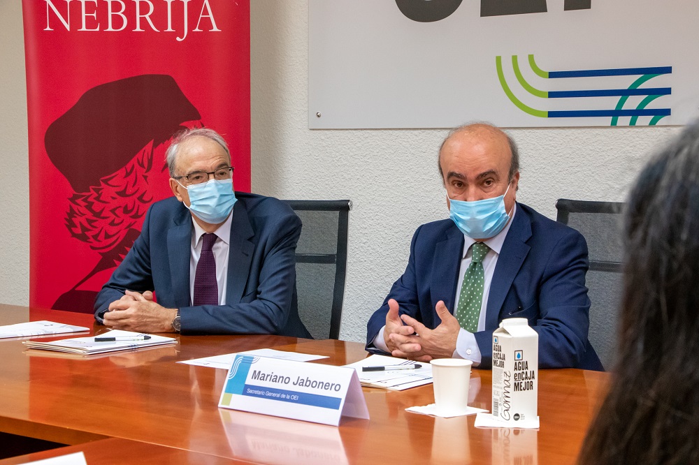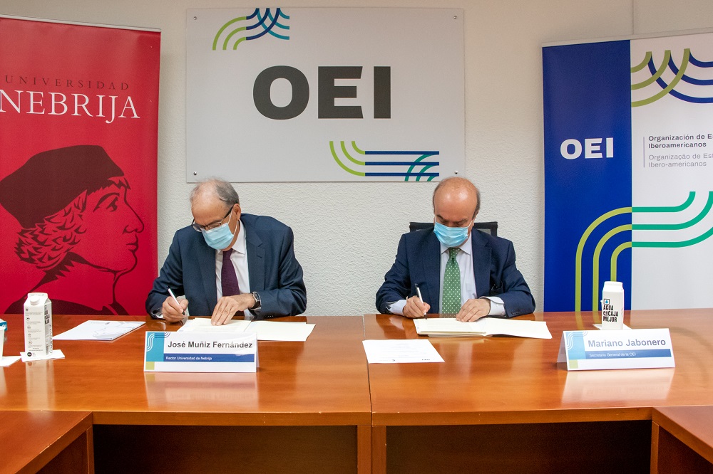 La Organización de Estados Iberoamericanos (OEI) y la Universidad Nebrija han suscrito un acuerdo marco de colaboración en el cual se establecen los principios de la cooperación que ambas instituciones desarrollarán en beneficio de la educación superior en la región. Específicamente el acuerdo pone su mirada en el fortalecimiento de la estrategia de la OEI Universidad Iberoamérica 2030, en la que la Universidad Nebrija pasará a ser otra de las instituciones aliadas en el propósito de construir un espacio compartido de movilidad e investigación en la región. Asimismo, el acuerdo prevé acciones orientadas a la formación de profesionales, así como al impulso de colaboraciones en materia de investigación.