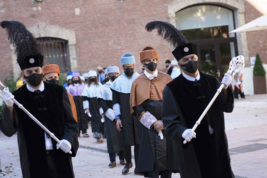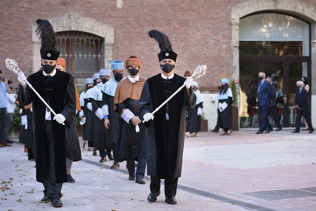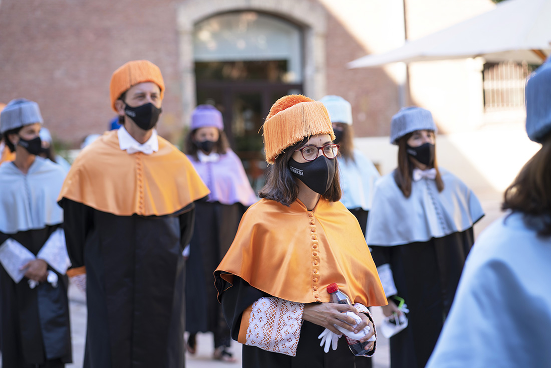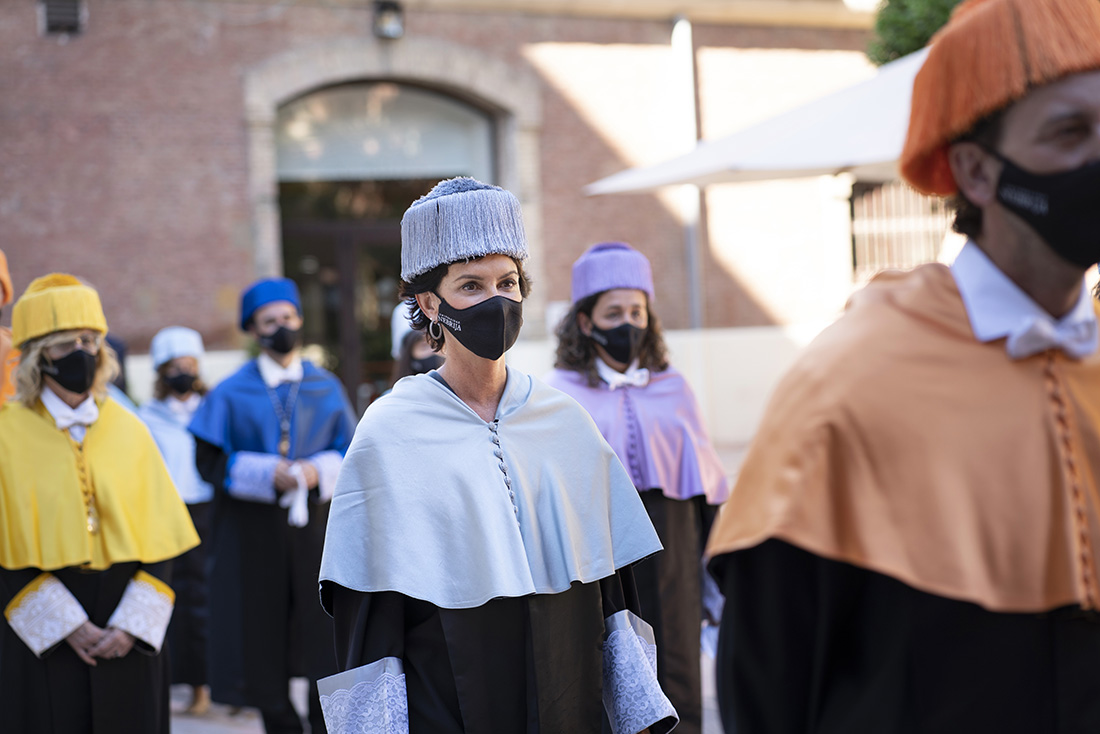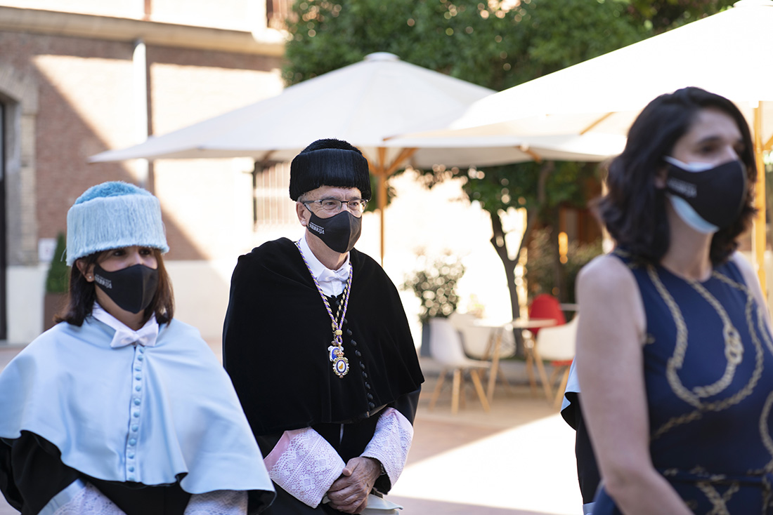 Varios alumnos tomaron la palabra para representar a sus compañeros de diversas titulaciones. Elena Carro, graduada del Máster en Mercado del Arte y Gestión de Empresas Relacionadas. Carro reconoció el valor de la implicación de profesores, personal y familias en su formación y el apoyo brindado “en este año tan atípico”. Además, Carro aseguró sentirse “muy afortunada de haber compartido este tiempo con vosotros”.
