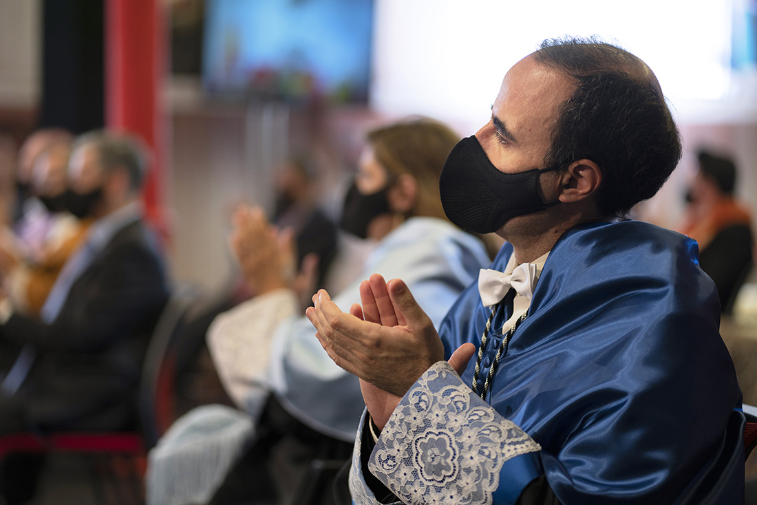 Los profesores también tuvieron ocasión de dirigirse a los alumnos de los que se despedían. Moussa Boumadan, profesor de la Facultad de Lenguas y Educación, quien aseguró que las circunstancias de estos últimos años “nos han convertido en personas más perseverantes, empáticas, flexibles y resilientes”. Esto, explicó Boumada, los profesores “hemos podido verlo en los alumnos que han ganado esas habilidades intangibles, pero imprescindibles”. El profesor puso en valor “el entorno de colaboración del que todo el claustro ha sido cómplice poniendo en primer lugar la formación de nuestros alumnos”.