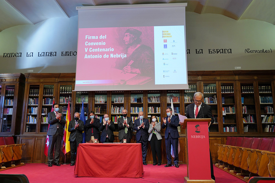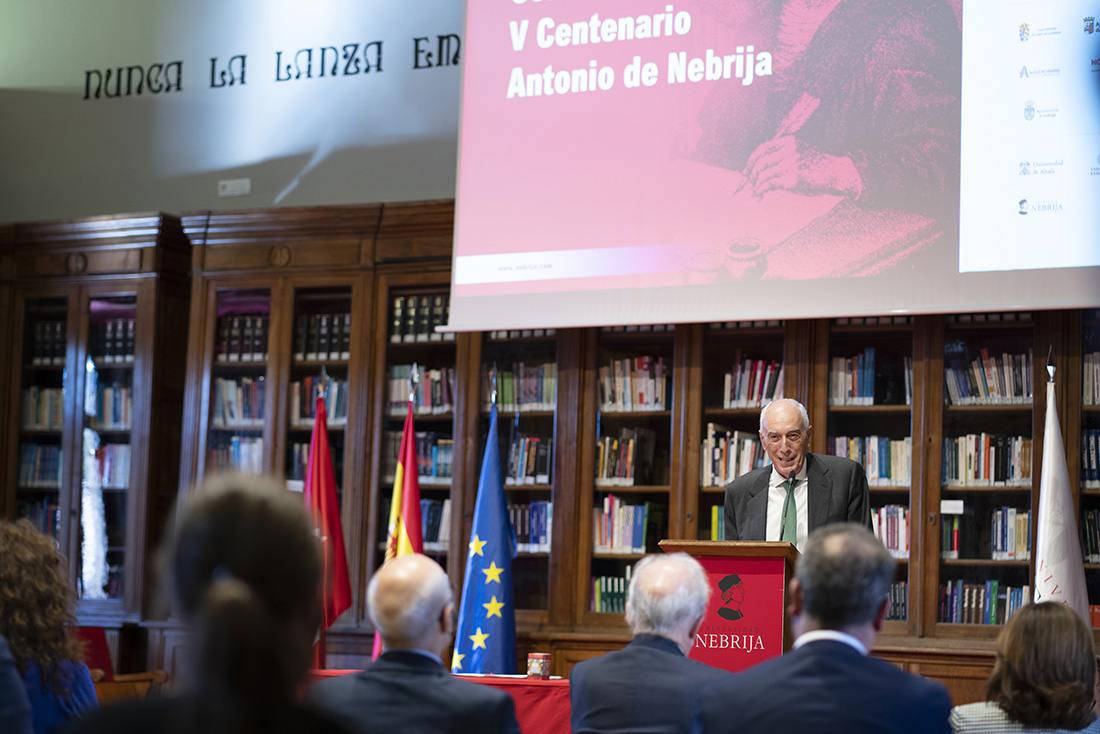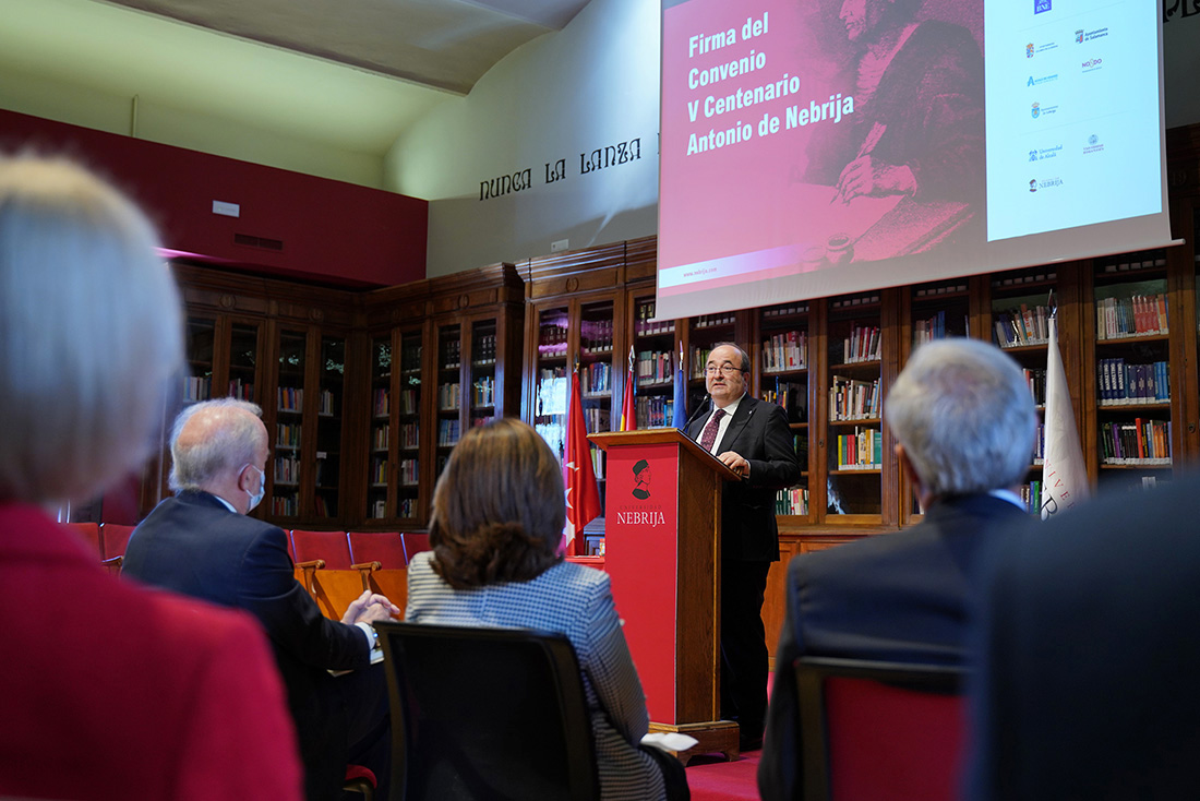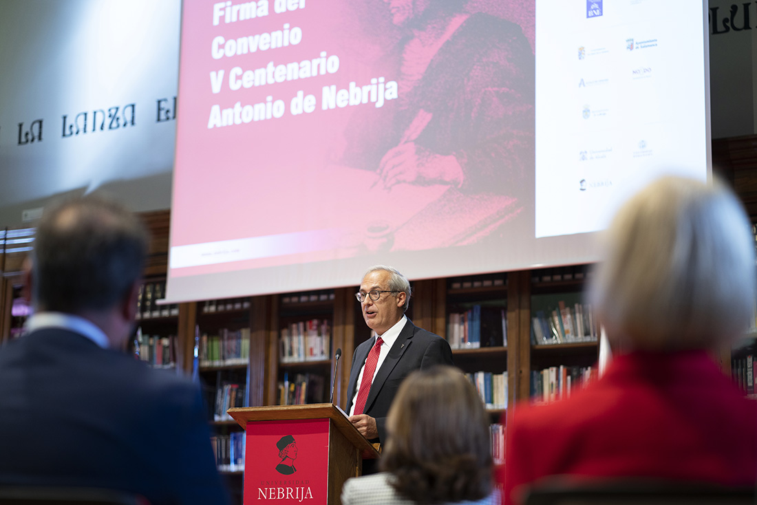 En los prolegómenos del acto institucional, Gregorio Martínez, director de Relaciones Institucionales de la Universidad Nebrija y de la Fundación Antonio de Nebrija, mostró su confianza en que el V Centenario sea “una reivindicación del conocimiento y la innovación, del poder de la palabra y de los valores” que introdujo Nebrija a principios del siglo XVI en España. “Aspiramos, en suma, a que esta efeméride sea una gran Celebración del Humanismo”, aseveró.