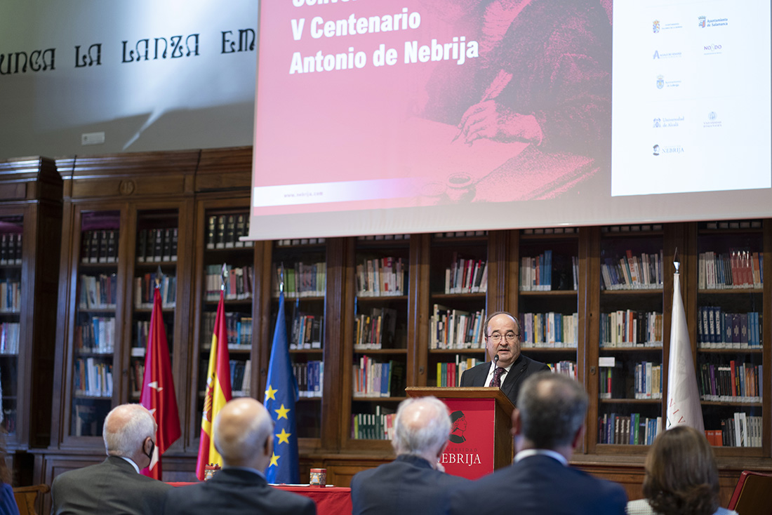 Según el ministro, el interés de Antonio de Nebrija por múltiples saberes “demuestra que quien lee y escribe no pone fronteras al conocimiento”. Insistió en que esta celebración es una oportunidad “que nos recuerda que las lenguas tienen un valor universal” y “vamos a aprovecharla para rendir un homenaje a su obra y su persona y recordar que somos portadores de una lengua con vocación universal y con vocación de permanencia, y de una cultura con unos valores para engrandecer”. En definitiva, el ministro de Cultura y Deporte confío en que “esa huella se perpetúe y se prolongue por siglos y milenios”.