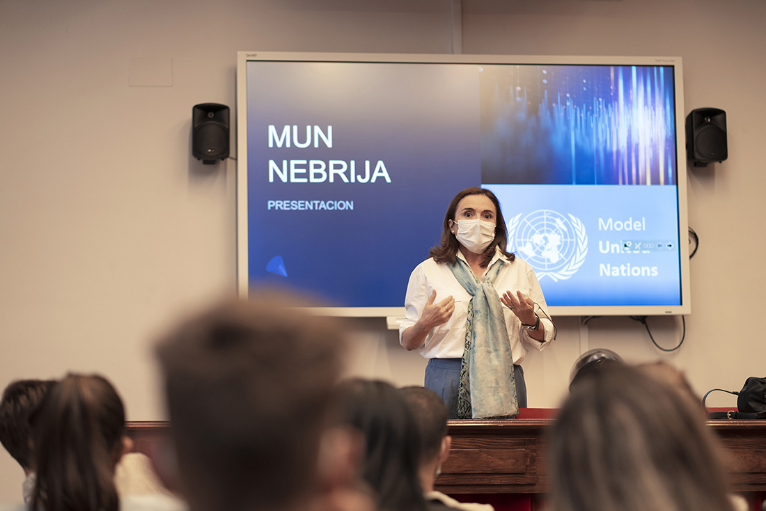 NebrijaMUN vuelve con fuerza. La pandemia redujo a su mínima expresión las actividades del Modelo de Naciones Unidas de nuestra Universidad. Siempre cumpliendo con la normativa, los alumnos miembros del NebrijaMUN siguieron trabajando y siguieron reuniéndose en sesiones de entrenamiento. Ahora, por fin, podemos volver a desarrollar con normalidad las sesiones y podemos volver a plantear la posibilidad de enviar delegados Nebrija a MUN externos, nacionales e internacionales.