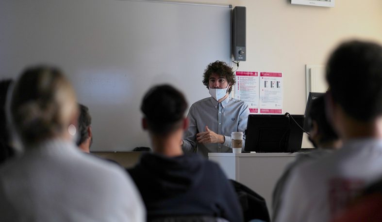 La comunicación audiovisual tiene el poder no solo de transmitir hechos que están pasando, sino también de reflejar algo tan abstracto como los sentimientos o las emociones que nos provoca una melodía determinada. Precisamente en esa misión se embarca cada día Jesús Hernández, alias “NYSU”. El director de videoclips de grupos tan prestigiosos como Love of Lesbian, Zahara o Bastille, entre otros, reveló a los estudiantes de Nebrija algunos de los secretos detrás de una buena producción audiovisual.