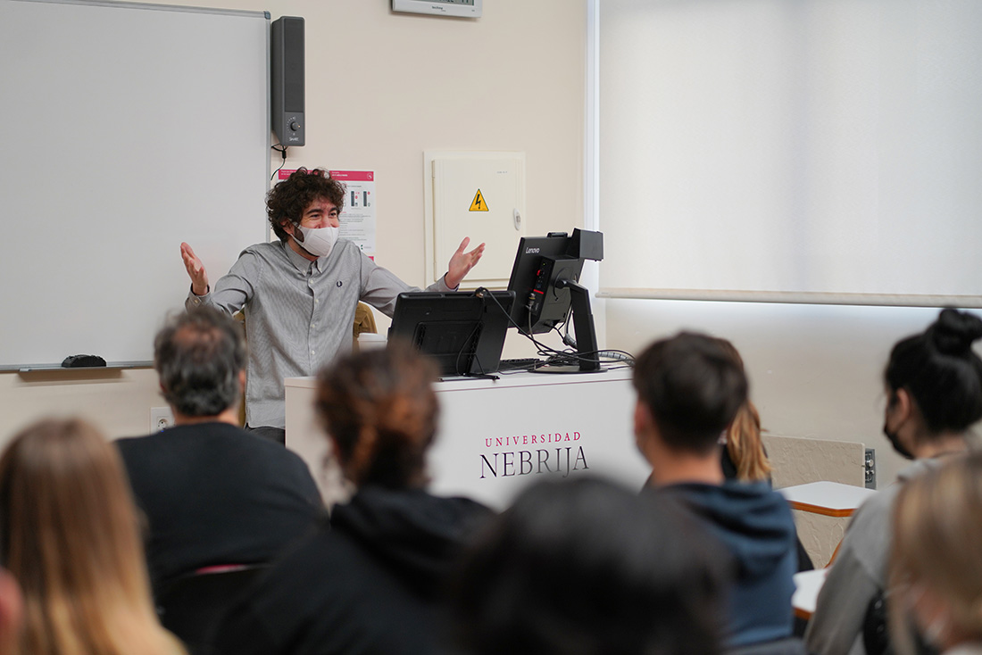 La comunicación audiovisual tiene el poder no solo de transmitir hechos que están pasando, sino también de reflejar algo tan abstracto como los sentimientos o las emociones que nos provoca una melodía determinada. Precisamente en esa misión se embarca cada día Jesús Hernández, alias “NYSU”. El director de videoclips de grupos tan prestigiosos como Love of Lesbian, Zahara o Bastille, entre otros, reveló a los estudiantes de Nebrija algunos de los secretos detrás de una buena producción audiovisual.
