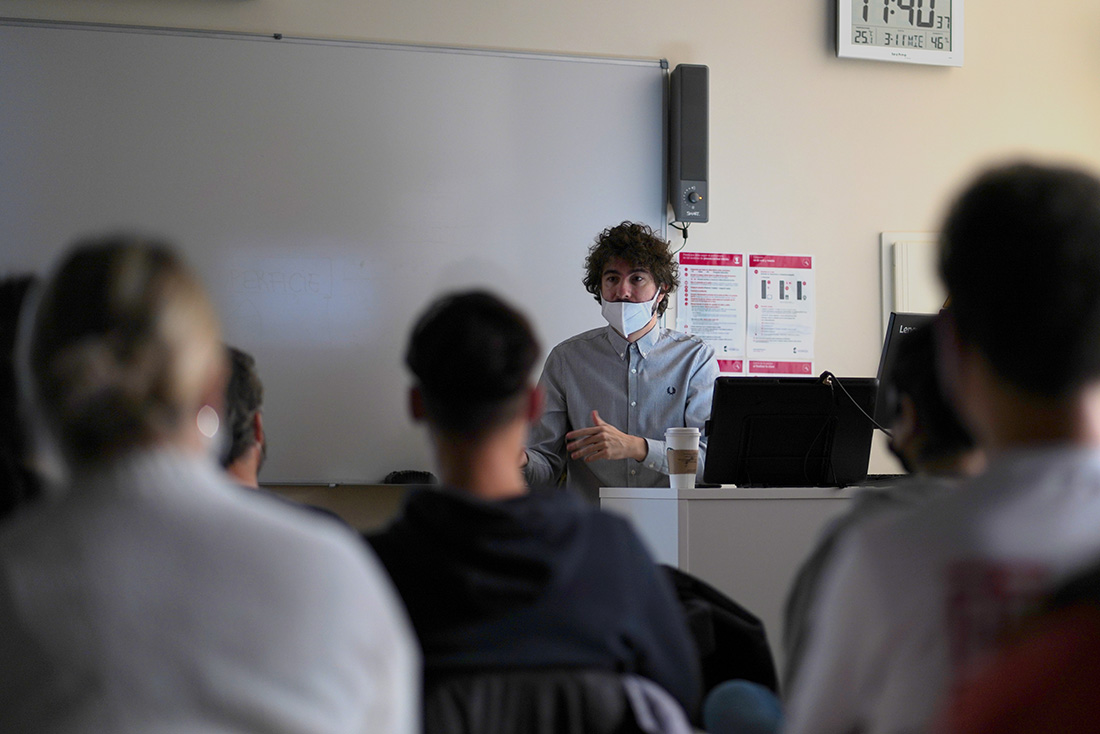 Sin embargo, antes de disponernos a grabar hay muchos pasos que seguir ante. Entre ellos destacan el brief o guion en blanco donde debemos situar el primer boceto de la idea o el tratamiento que será donde la plasmemos en papel y a su vez el documento que enviemos al artista o empresa, entre otros. “Es imprescindible que todo esté muy documentado y medido antes de empezar a grabar ya que en el rodaje no podremos ponernos a discutir sobre la luz, por ejemplo”, declara el director detrás de “NYSU”. Para ello, recomendó a los estudiantes que primero “editen sus propios cortos, practicando con sus amigos e incluso grabándoles con el móvil antes de empezar con el actor que va a protagonizar el rodaje”.