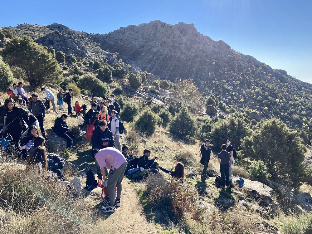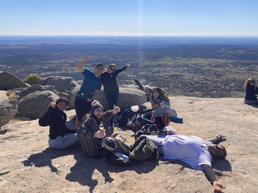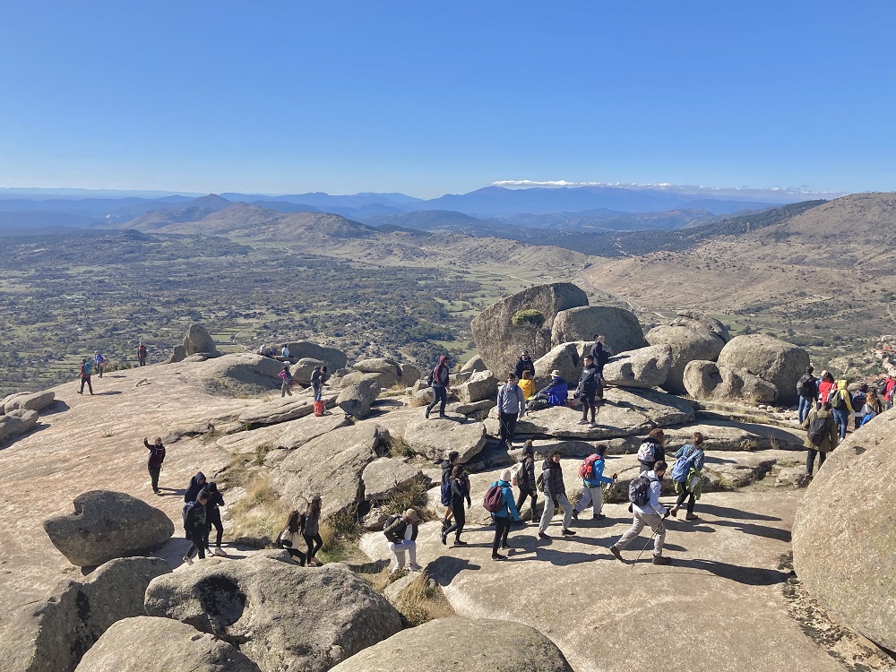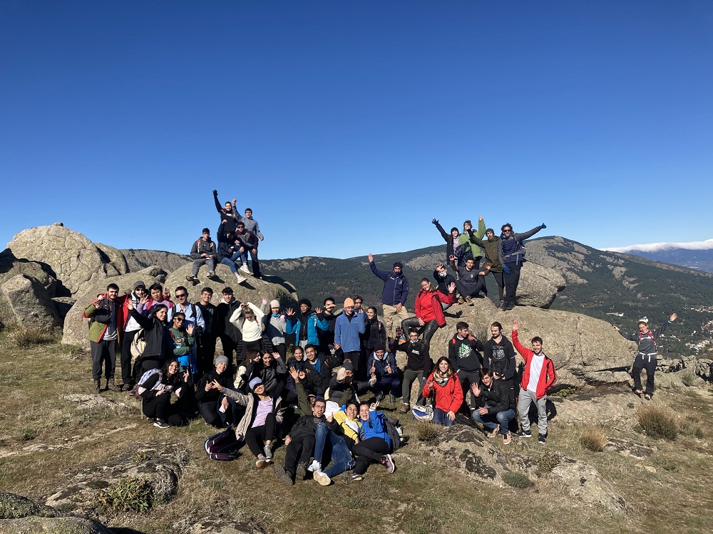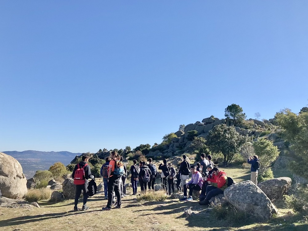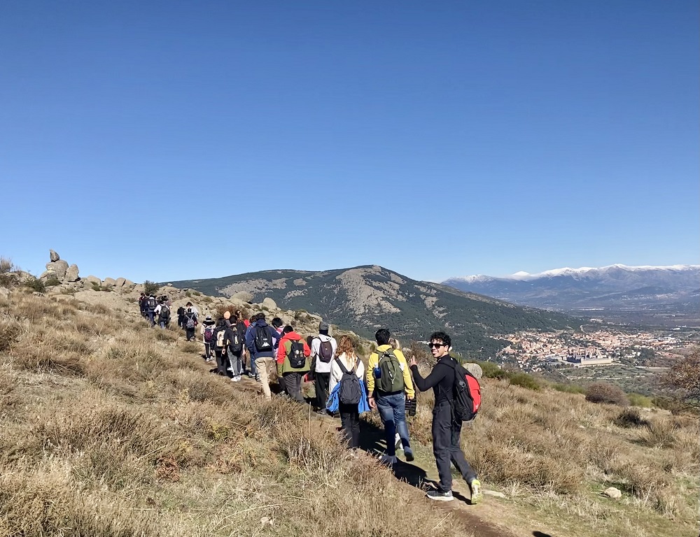 En esta ocasión, con un total de 50 alumnos de distintas facultades de la Universidad, la cita tuvo lugar en el entorno de Zarzalejo y San Lorenzo de El Escorial, y la ruta programada permitió ascender a Las Machotas, dos formaciones graníticas de más de 1400m de altitud por la senda de Entrecabezas, para posteriormente, una vez el grupo hizo cumbre en ambos picos, descender por el Camino de San Lorenzo y experimentar el senderismo por estas cumbres próximas a Monasterio de El Escorial que fueron cantera de la centenaria construcción que impulsó Felipe II.