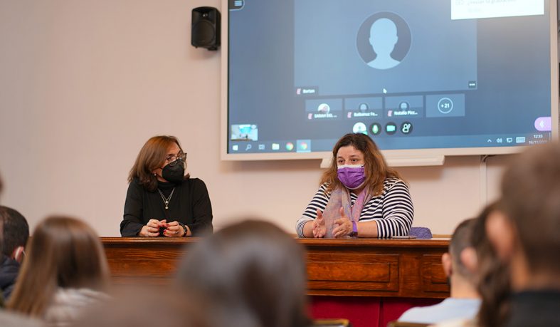 Antes del encuentro con Pilar Requena, los alumnos vieron el documental El legado del califato, dirigido por la periodista especializada en información internacional desde hace más de 30 años y responsable de la unidad de investigación de TVE. Este reportaje aviva el debate sobre qué hacer con los yihadistas europeos o residentes detenidos en el Kurdistán que se unieron al califato de Daesh en Siria e Irak. El reportaje recoge de primera mano, entre otros, los testimonios de presos como los de la cárcel de Hasaka, con 5000 excombatientes del Estado Islámico, o de las mujeres, que, junto con sus hijos, viven en campos de refugiados. Todo, sin obviar a víctimas como las esclavas sexuales yazidíes, y contrastando las opiniones, por ejemplo, de mujeres españolas casadas con miembros del Estado Islámico con una exhaustiva labor de documentación y consulta de fuentes.