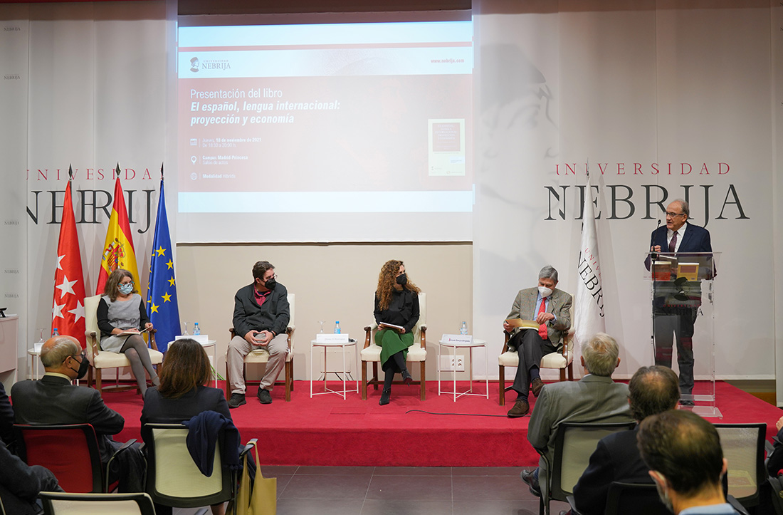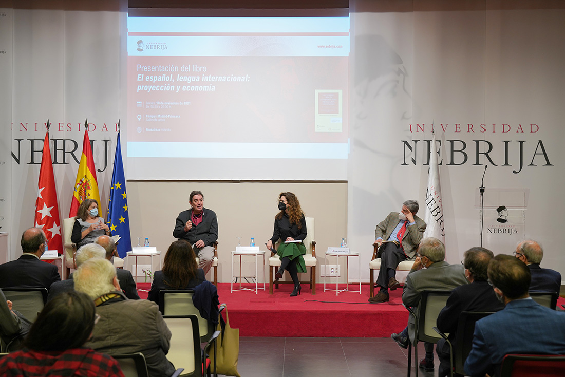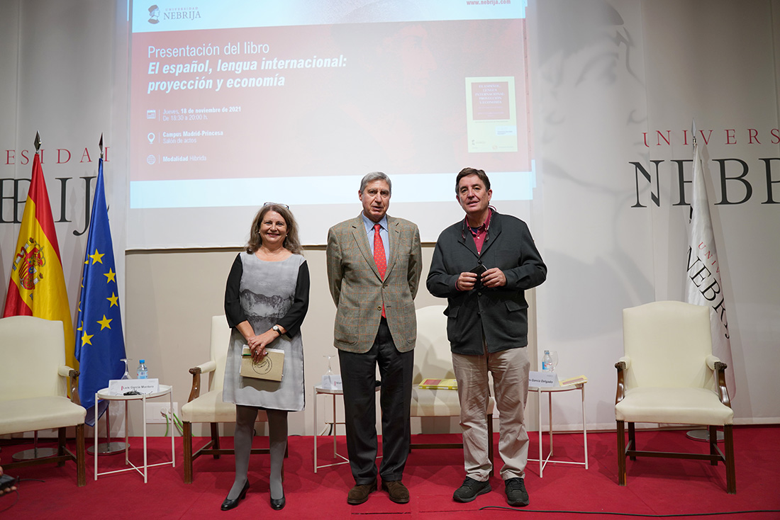 “La lengua española constituye un activo económico capaz de añadir valor”. Esta cita de José Luis García Delgado, catedrático de Economía Aplicada de la Universidad Nebrija, extraída del libro El español, lengua internacional: proyección y economía, alimentó cada una de las opiniones de lingüistas, economistas y académicos en la presentación del volumen editado por Civitas, Universidad Nebrija y Thomson Reuters. En la puesta de largo, Luis García Montero, director del Instituto Cervantes, José Luis García Delgado, que dirige la edición, y la escritora María Elvira Roca Barea, profesora de la Universidad de Luxemburgo, compartieron su amor por el idioma y la evidencia económica de su lugar en el mundo en un acto que se adelantó al comienzo del V Centenario del fallecimiento del polímata Antonio de Nebrija.