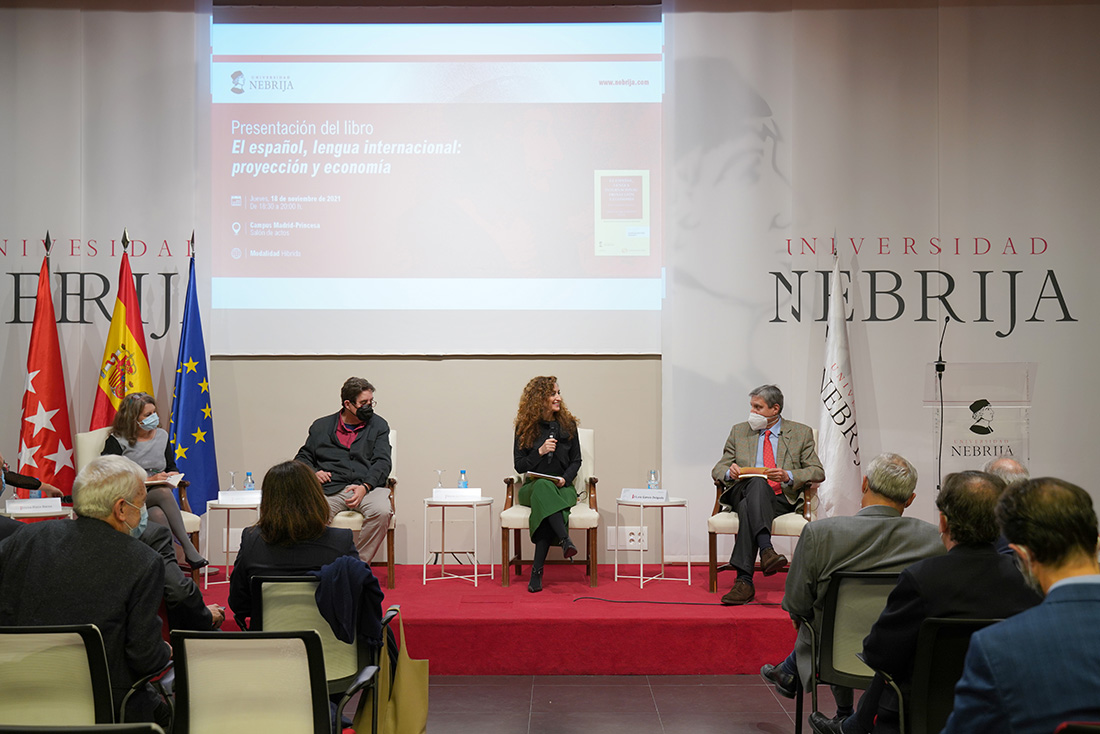 María Elvira Roca Barea agradeció a José Luis García Delgado su “esfuerzo por poner números al español” y su “empeño por hacer accesible” el libro a todo tipo de lectores. El catedrático de Nebrija, por su parte, dedicó los elogios a los coautores por elaborar un ensayo “pluriuniversitario, pluridisciplinar y plurigeneracional” que trata sobre “nuestro producto más valioso y milagroso”. Como el director del Instituto Cervantes, clamó por “el cuidado y la promoción del español, que deber ser un tema de Estado y de toda la sociedad que hemos de apoyar también presupuestariamente”.