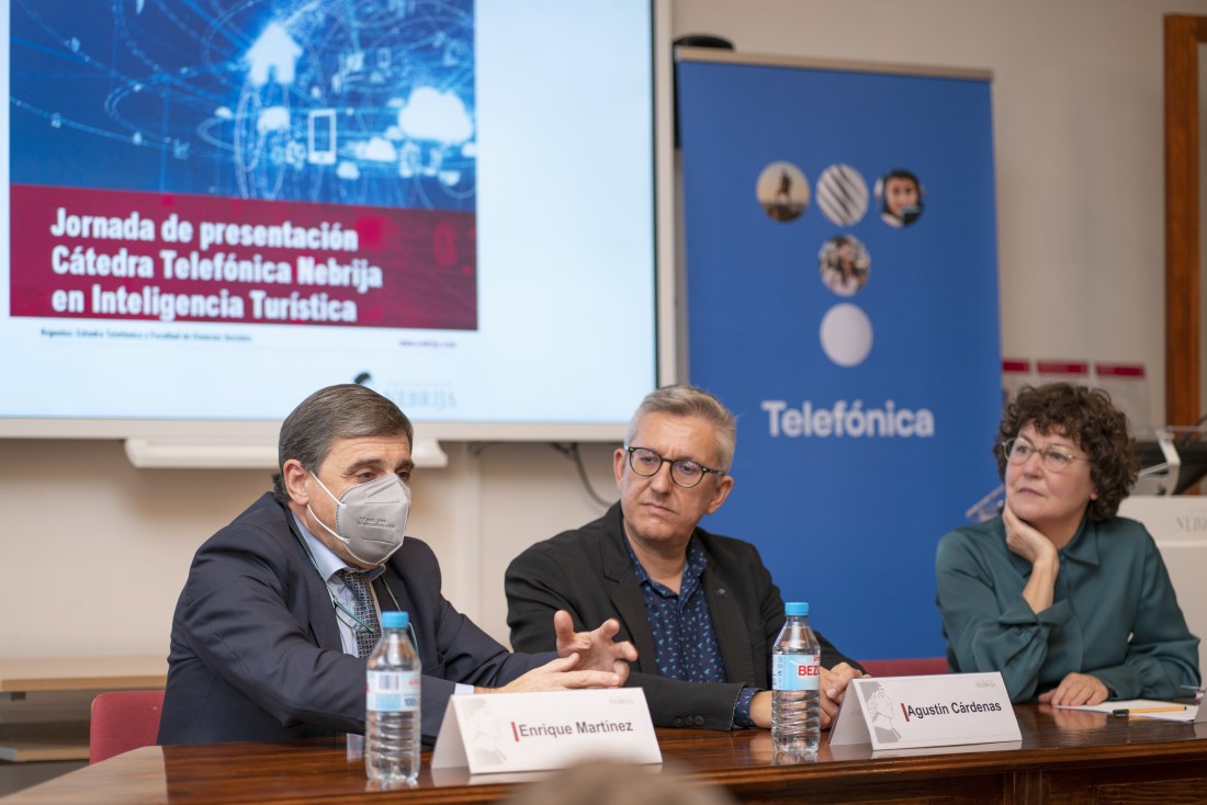La recién instaurada Cátedra impulsará proyectos y actividades que permitan la incorporación de tecnologías e innovaciones destinadas a la digitalización y a la creación de productos y servicios en el sector turístico. En su presentación, tuvo lugar una mesa redonda que, bajo el título Progreso hacia el futuro del turismo: desarrollo inteligente y resiliencia, reunió a Enrique Martínez Marín, presidente de SEGITTUR (Sociedad Estatal para la Gestión de la Innovación y las Tecnologías Turísticas); a Agustín Cárdenas, director de Transformación de Negocio y Empresas de Telefónica, y a Aurkene Alzua-Sorzabal, profesora, investigadora y directora de la Cátedra Telefónica–Nebrija en Inteligencia Turística.