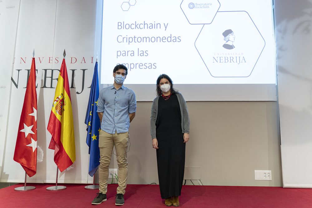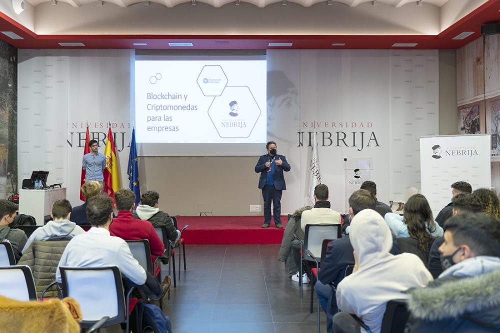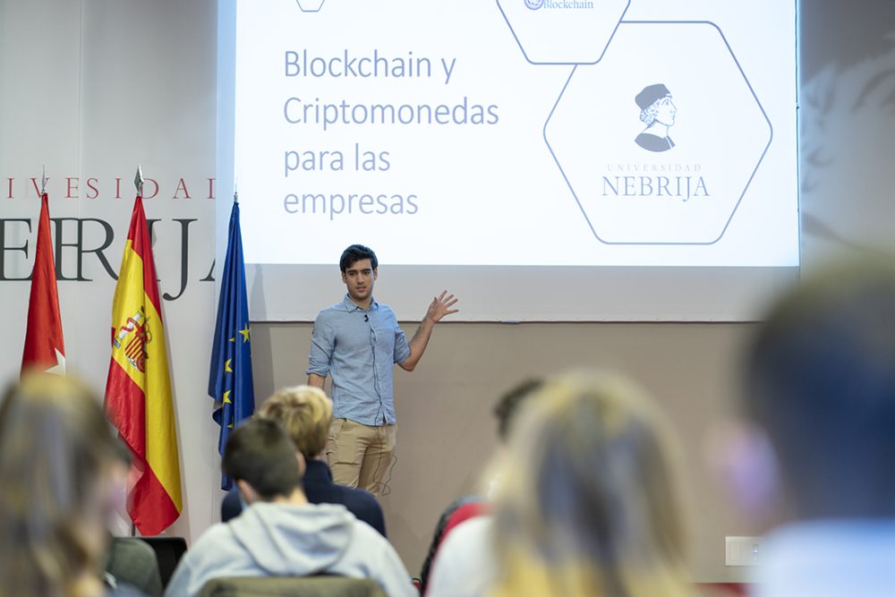 Las criptomonedas están en el centro del debate económico en todo el mundo. No obstante, en el intercambio de ideas parece pasar a un segundo plano el blockchain, el conjunto de tecnologías que permite la trasferencia de valor e información de manera segura sin intervención de intermediarios. Para argumentar sobre este potencial, Covadonga Fernández y Guillermo Callejo, CEO y jefe de Operaciones, respectivamente, del digital Observatorio Blockchain, dieron una ponencia a los futuros economistas de la Universidad Nebrija.