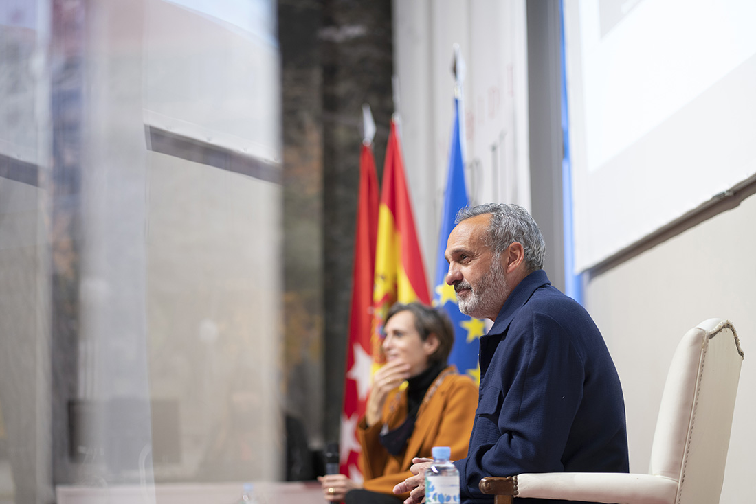 Luengo compartió con los alumnos su forma de ver el mundo del diseño de moda. “Nuestro propósito es darle alas y preservar la moda de autor. Lo hacemos con la asociación con diferentes artistas en cada colección. Esta colaboración nos lleva a cada nueva colección”. Marcos Luengo crea colecciones a partir de las obras pictóricos de artistas que le inspiran. Esas obras le llevan a elegir los tejidos con los que dará forma a sus piezas y “los tejidos me llevaban a los volúmenes”, sello de la firma. “Creo que en la moda la única forma de innovar que queda es con los nuevos tejidos, porque todo lo demás está hecho”, añadió el diseñador.
