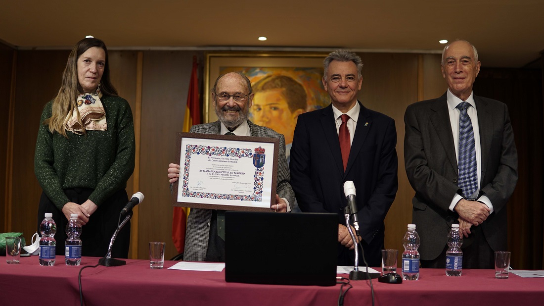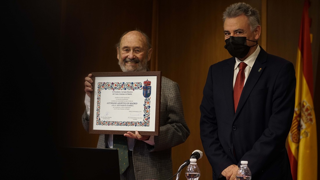 El Centro Asturiano de Madrid, dentro de los Encuentros de Educación y Salud, entregó el título de Asturiano Adoptivo en Madrid a Jesús Martín Ramírez, director de la Cátedra Global Nebrija-Santander en Gestión de Riesgos y Conflictos. El profesor e investigador, que se comprometió a llevar esta distinción “con el orgullo y dignidad que se merece”, agradeció su nombramiento a Valentín Martínez-Otero, presidente del Centro Asturiano de Madrid y director del Grupo Complutense de Investigación Psicosociobiología de la Violencia: Educación y Prevención, y a Manuel Villa-Cellino, presidente del Consejo Rector de la Universidad Nebrija, por haberle permitido prolongar su actividad académica “al abrirme Nebrija, junto a su hasta hace poco rector Juan Cayón, tras mi jubilación forzosa de la Complutense”.