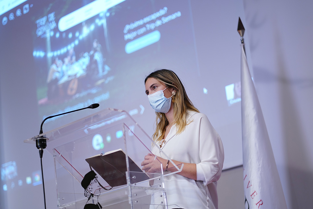 El primer equipo, formado por Celia Carballo Méndez, Ana Salas Fernández y Estela Valls Gras, presentó su idea para una agencia de viajes online en la que destacó como aspecto diferenciador la reinvención del turismo a través de nuevos paquetes originales y sostenibles y una búsqueda de la cercanía con los clientes a pesar de ser online.