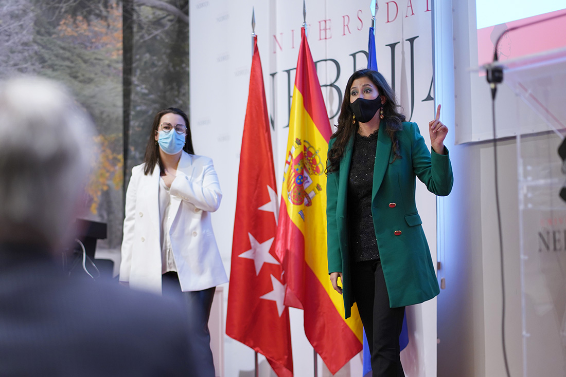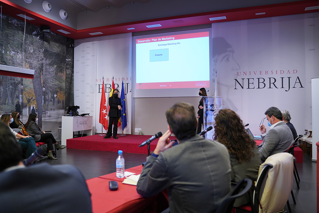 El jurado tuvo un tiempo para deliberar y decidir a qué grupos entregar los premios: “Hemos valorado de vuestros proyectos que todas las piezas encajen. El Rotary Club aglutina personas a las que nos une que todos tenemos un perfil relacionado con la empresa y las pequeñas iniciativas que impactan en nuestra sociedad con el sentimiento de ayudar allí donde nos llamen. Por eso estamos agradecidos a Nebrija y Universitas XXI por dejarnos disfrutar de vuestros proyectos. Al leerlos nos han ido surgiendo ideas para mejorar los negocios, reforzar esos modelos de negocios y ahí vimos que podíamos aportar ese valor, ideas de mejora. En definitiva os ofrecemos valor con nuestros consejos y apoyo económico, esa es nuestra portación desde el Rotary Club. Os animamos a que cojáis este ofrecimiento, abrid vuestra partida y enhorabuena por vuestro trabajo”, explicó José Ángel Zabalegui, miembro del Rotary Club Madrid.