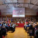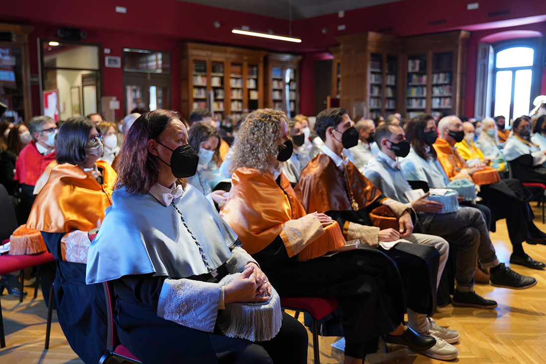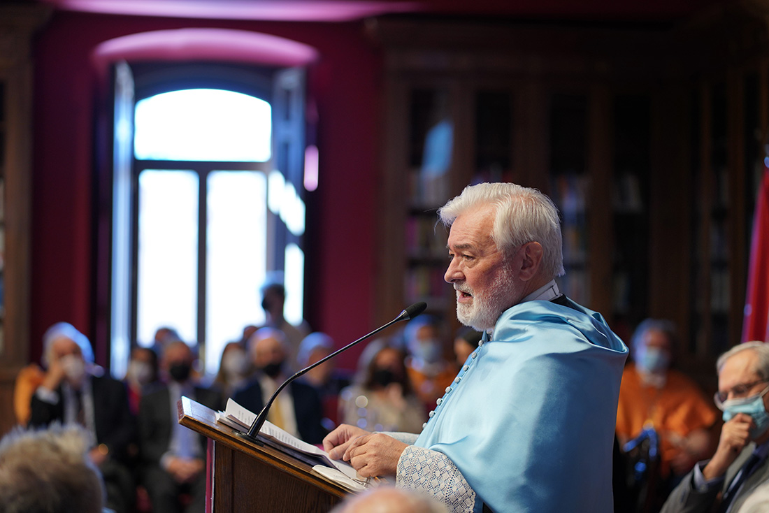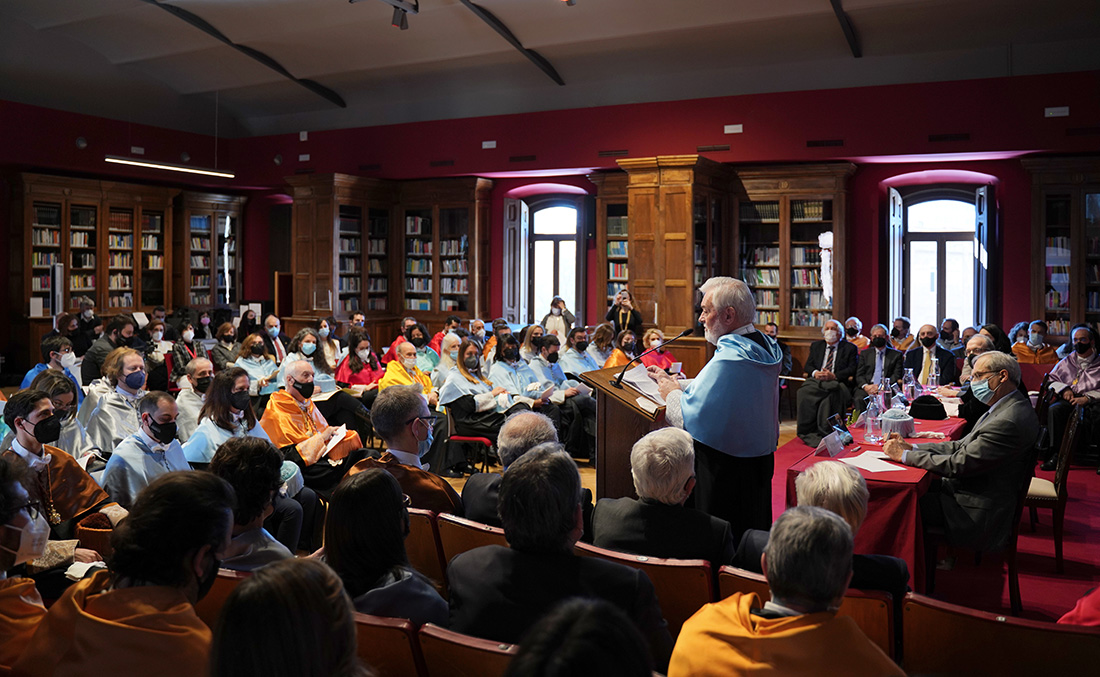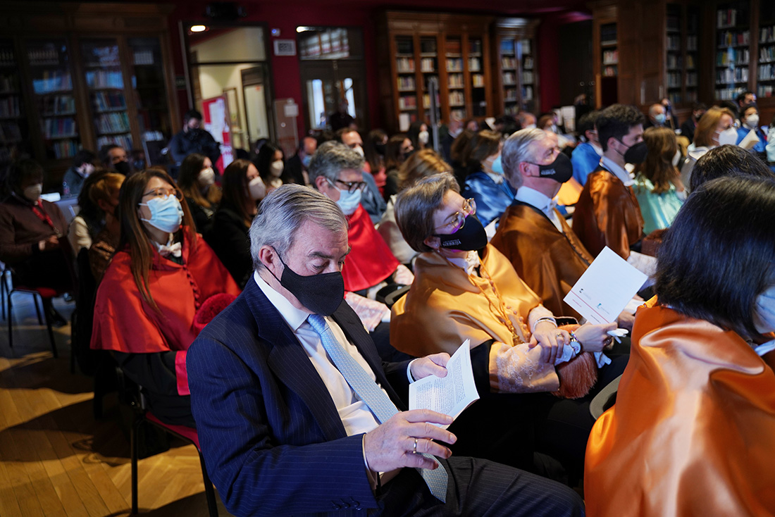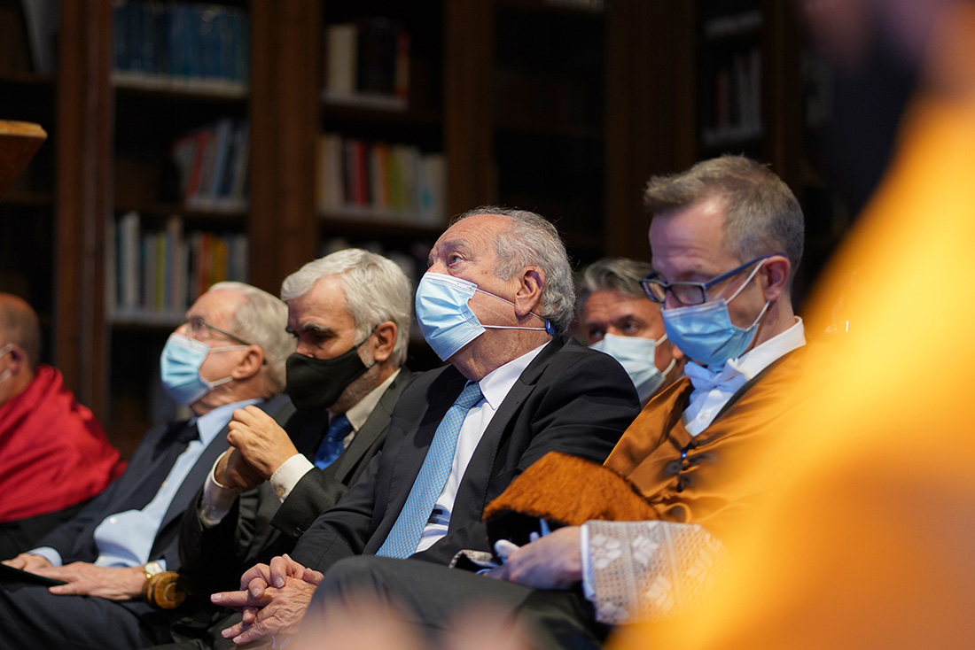 Darío Villanueva, presidente del Patronato de la Universidad Nebrija y exdirector de la Real Academia Española, pronunció la lección magistral La verdad de las distopías en el acto de la festividad de Santo Tomás de Aquino celebrado en la biblioteca del Campus de Madrid-Princesa. Antes, habían tomado protagonismo el cortejo ceremonial de la Universidad y los corrillos de personalidades en torno al V Centenario del Fallecimiento de Antonio de Nebrija.