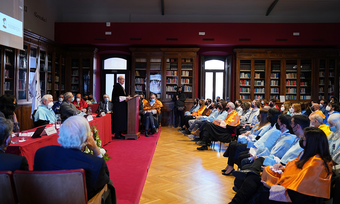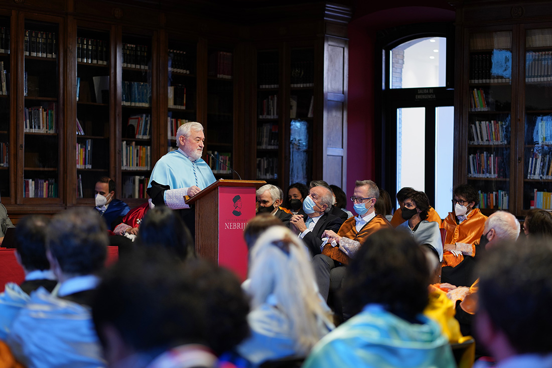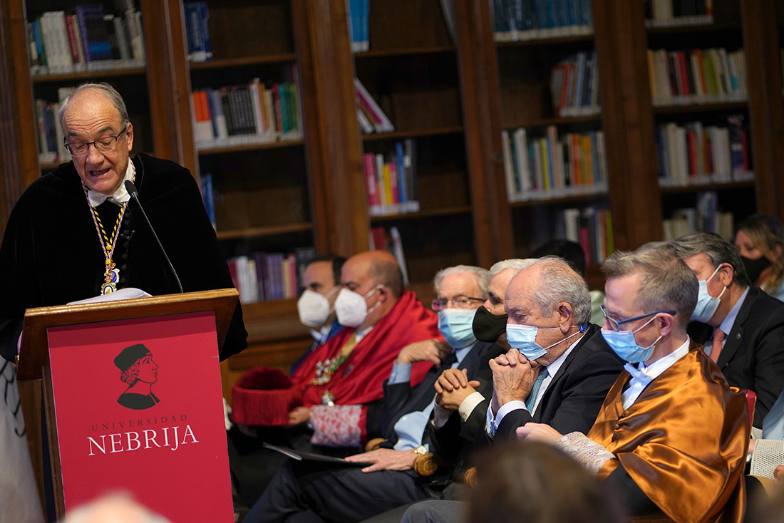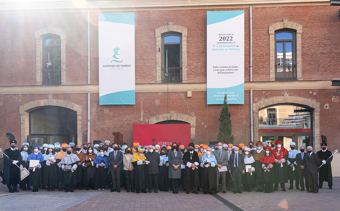 Por otra parte, la Universidad Nebrija presidie la Comisión Interadministrativa responsable de todas las actividades del V Centenario del Fallecimiento de Antonio de Nebrija, en la que participan instituciones de máximo nivel, como el Ministerio de Cultura y Deporte, el de Hacienda, el de Asuntos Exteriores, Instituto Cervantes, la Biblioteca Nacional, la Real Academia Española, las Universidades de Salamanca y Alcalá, así como varios ayuntamientos e instituciones. “Nebrija fue un brillante profesor e investigador, y representa a la perfección los valores universitarios: Pasión por saber, búsqueda de la verdad, independencia de criterio, confianza en la razón, espíritu científico, amplitud de miras, actitud crítica, capacidad de trabajo, sentido del humor, o talante innovador, por citar solo algunos rasgos”, reseñó el rector.