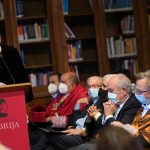 Sobre esta efeméride, sobre el agradecimiento a Darío Villanueva y a toda la comunidad Nebrija y sobre los temas candentes de la universidad giró el discurso del rector José Muñiz. “Vamos a seguir trabajando con el mismo espíritu positivo, sin perder de vista nunca que nuestro objetivo central, nuestra misión, es conseguir que la Universidad Nebrija esté entre las mejores, en docencia, en investigación, en transferencia del conocimiento y en transmisión de la cultura”, señalo.