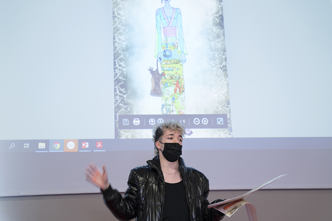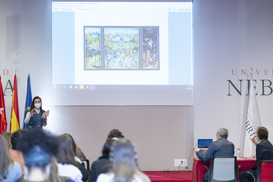 En el II Encuentro con Marcos Luengo tras la primera cita del pasado diciembre, el modista volvió a encontrarse en persona con nuestros alumnos. Elegido diseñador del año del Grado en Diseño de Moda de la Facultad de Comunicación y Artes, revisó los proyectos que, uno a uno, expusieron los estudiantes. Para este proyecto, todos los bocetos y figurines se han trabajado en torno a la celebérrima obra de El Bosco El Jardín de las Delicias.