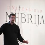 Ángel Serrano, profesor de Diseño del Departamento de Artes de la Universidad Nebrija, presentó su último libro de relatos en el salón de actos del Campus de Madrid-Princesa. De pie, con guiños al público, con humor y amor, el escritor dio pinceladas de un volumen que presta atención a la tipografía, pero sobre todo a las mujeres que han marcado su vida o que en algún momento se han paseado por los intersticios de su memoria y de su imaginación. Cada cuento que titula por una letra del alfabeto representa “a una mujer que me dio una historia o una inicial”.