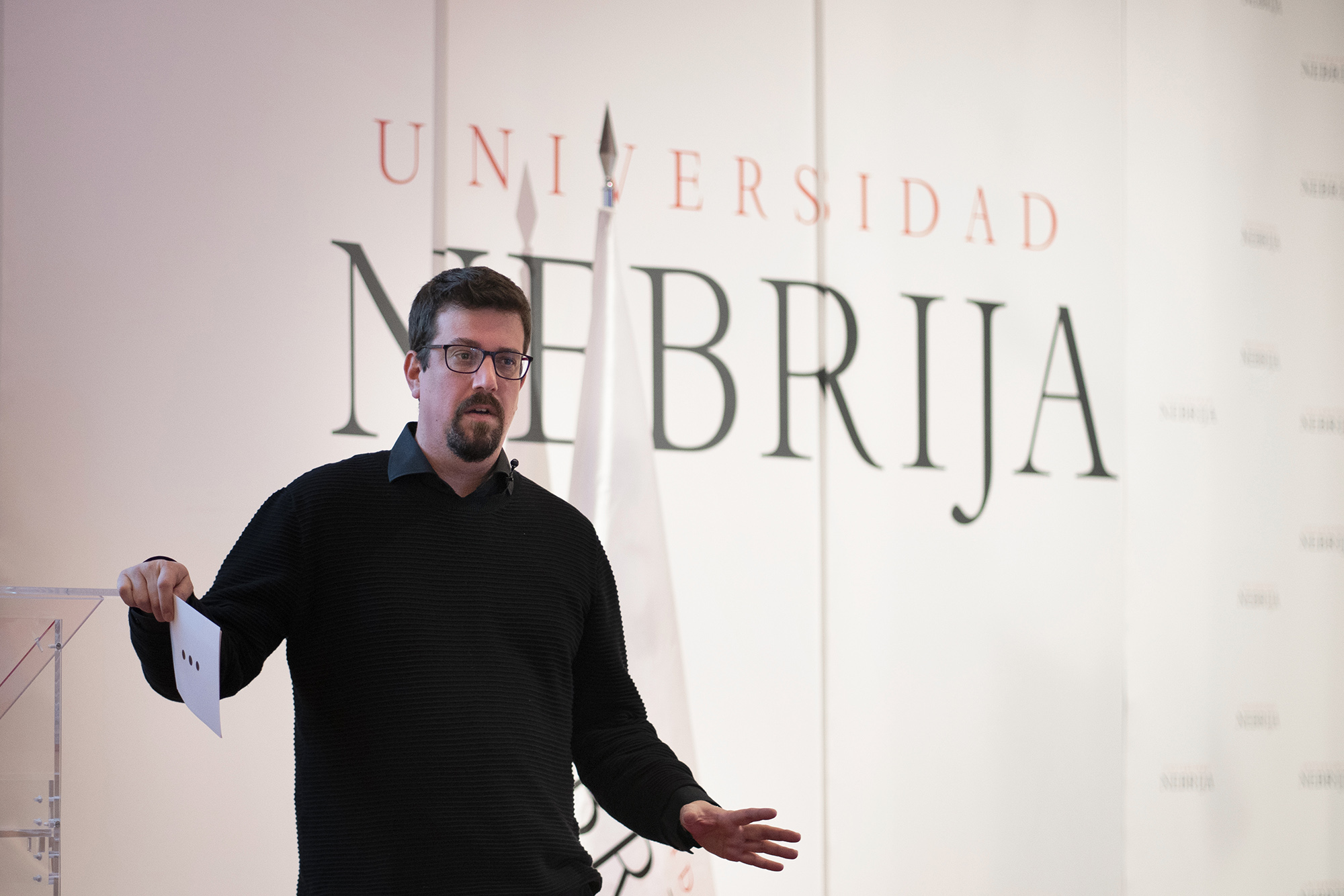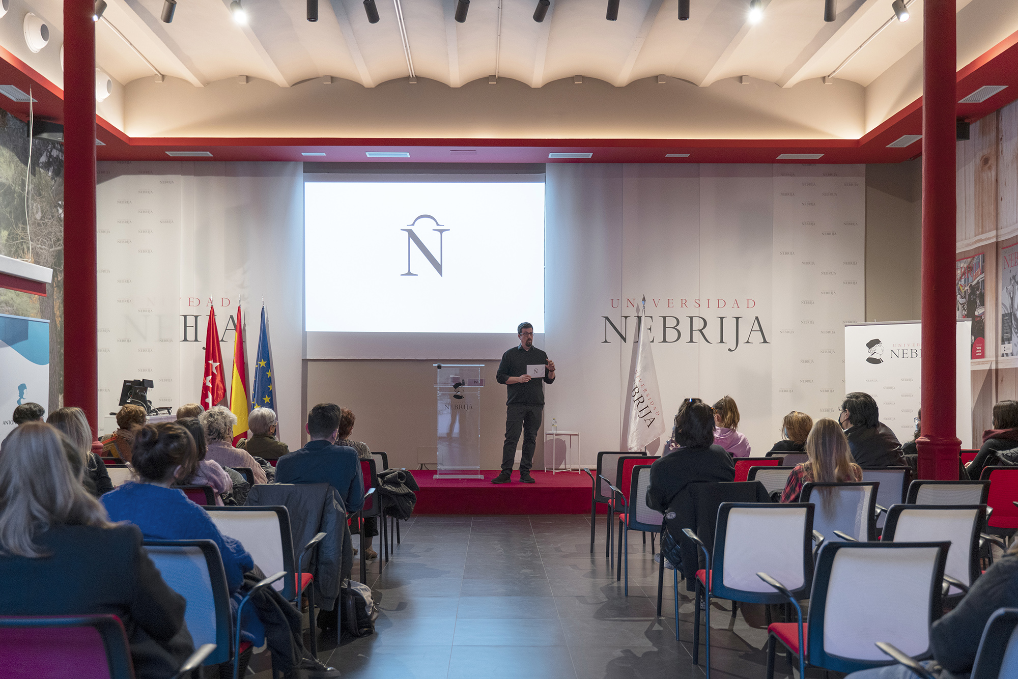 Ángel Serrano, profesor de Diseño del Departamento de Artes de la Universidad Nebrija, presentó su último libro de relatos en el salón de actos del Campus de Madrid-Princesa. De pie, con guiños al público, con humor y amor, el escritor dio pinceladas de un volumen que presta atención a la tipografía, pero sobre todo a las mujeres que han marcado su vida o que en algún momento se han paseado por los intersticios de su memoria y de su imaginación. Cada cuento que titula por una letra del alfabeto representa “a una mujer que me dio una historia o una inicial”.