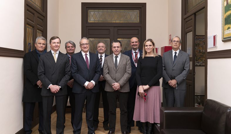 Representantes de la Universidad Nebrija y Pedro de Borbón Dos Sicilias y de Orleans, Luis Ordoñez Melgosa, presidente y secretario general de la Fundación Ferrer-Dalmau, respectivamente, y Augusto Ferrer Dalmau celebraron este miércoles un encuentro en el Campus de Madrid-Princesa.