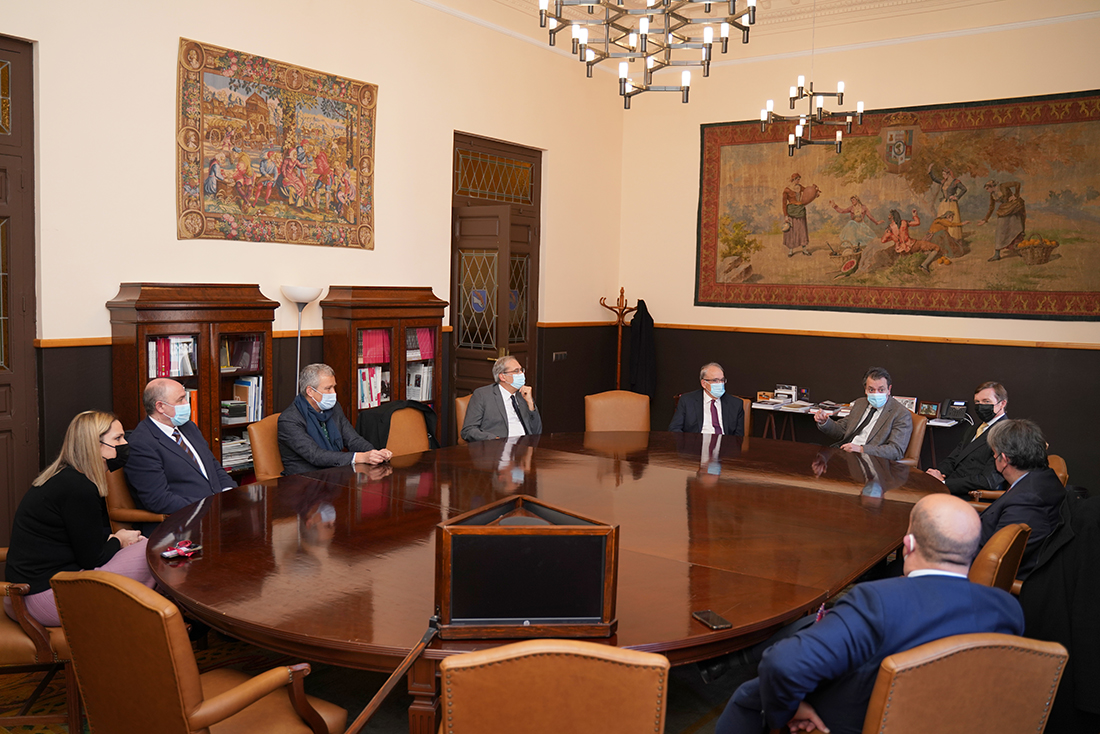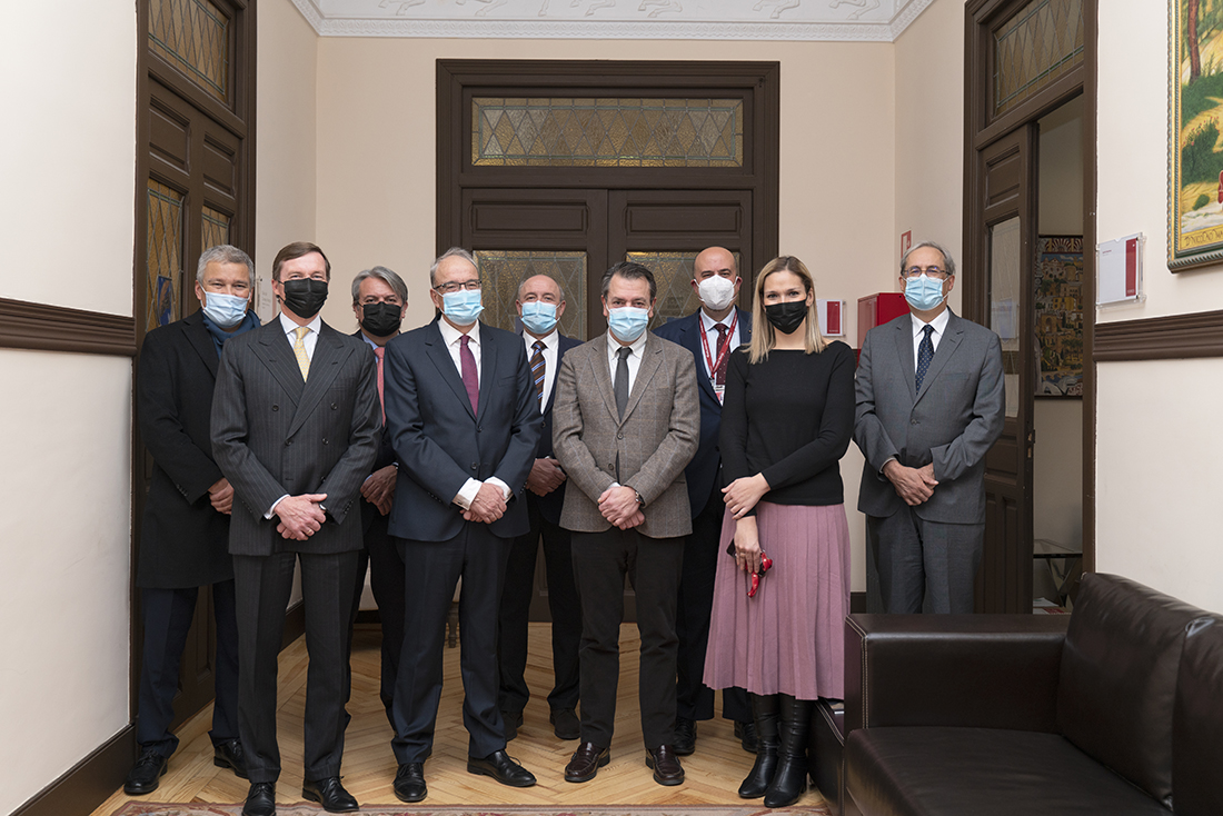 Representantes de la Universidad Nebrija y Pedro de Borbón Dos Sicilias y de Orleans, Luis Ordoñez Melgosa, presidente y secretario general de la Fundación Ferrer-Dalmau, respectivamente, y Augusto Ferrer Dalmau celebraron este miércoles un encuentro en el Campus de Madrid-Princesa.