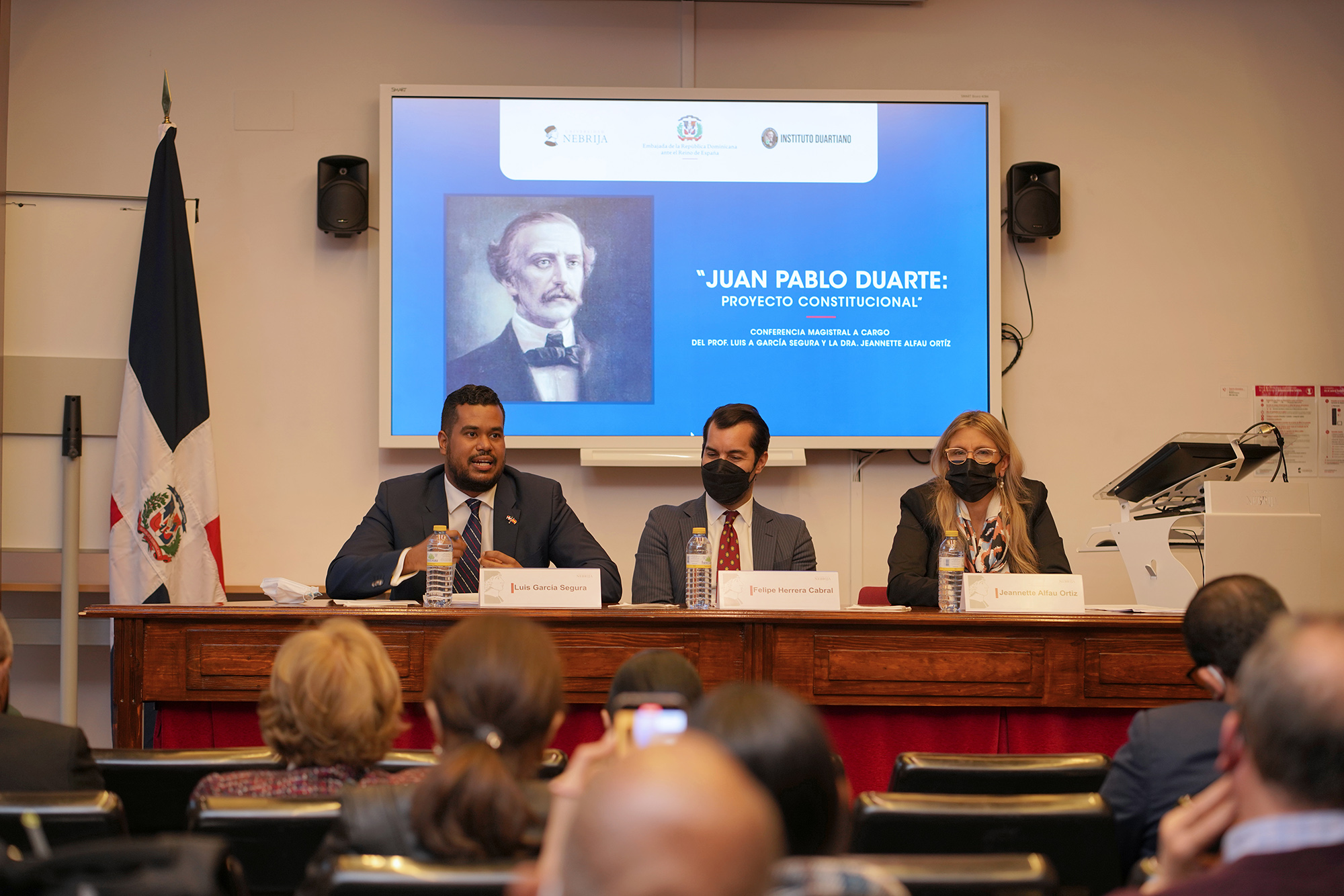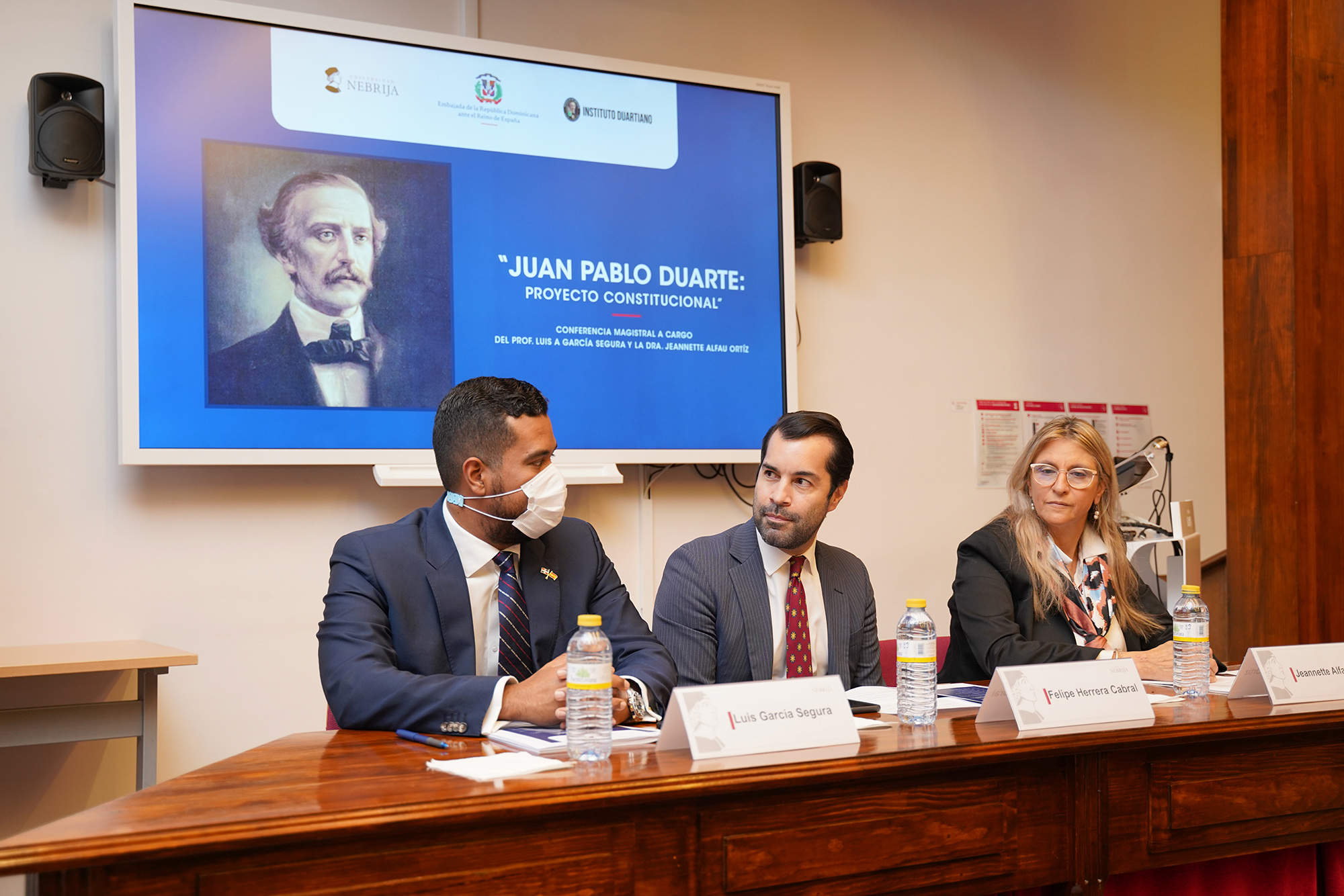 En el marco del “Mes de la Patria” de la República Dominicana, la Universidad Nebrija, el Instituto Duartiano y la Embajada de la República Dominicana en España organizaron una ponencia en torno a la figura de Juan Pablo Duarte. Es considerado uno de los tres padres de la patria dominicana y sobre sus relevantes aportaciones hablaron la presidenta del Instituto Duartiano de Madrid, Jeannette Alfau, el ministro consejero de la Embajada de la República Dominicana en España, Felipe Herrera, y el Director del Máster en Protección de Datos y Seguridad de la Universidad Nebrija, Luis García-Segura.