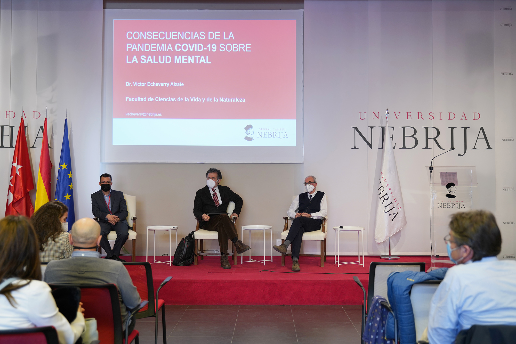 Por su parte, Víctor Echeverry, investigador y profesor de la Facultad de Ciencias de la Vida y de la Naturaleza, analizó las consecuencias de la pandemia en el ámbito de la salud mental. El psicólogo recordó que se han incrementado trastornos como el estrés, la depresión, el insomnio y la ansiedad en grupos vulnerables. Esto ha sido especialmente destacado en pacientes Covid. Igualmente en grupos de riesgo como niños y mujeres víctimas de violencia de género. También citó personas con otras patologías previas, pacientes con trastornos mentales o el personal sociosanitario.