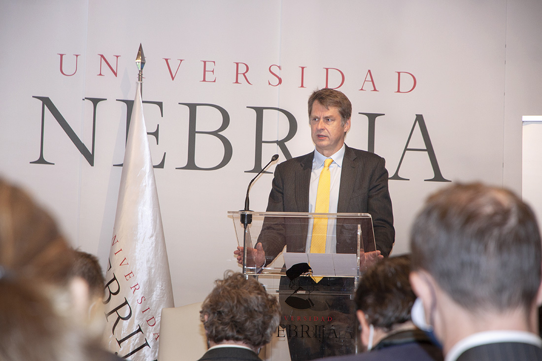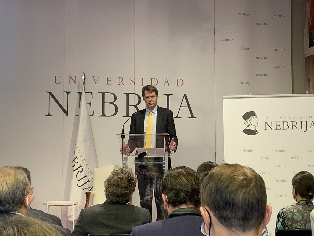 Tanto el embajador británico como José Muñiz, rector de la Universidad Nebrija, apelaron a la unidad ante esta agresión. “La democracia hay que defenderla cada día”, aseguró Muñiz, que pidió antes de empezar el acto un minuto de silencio por las víctimas de la guerra de Ucrania.