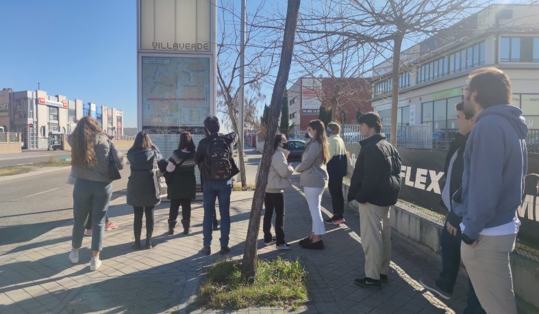 El grupo de la asignatura Estudios urbanos y territoriales I visitó el lunes 21 de febrero el distrito de Villaverde, en especial la zona del Polígono Industrial de Villaverde y la Colonia Marconi, sobre el que versarán las prácticas de curso de la asignatura de la profesora Alexandra Delgado.