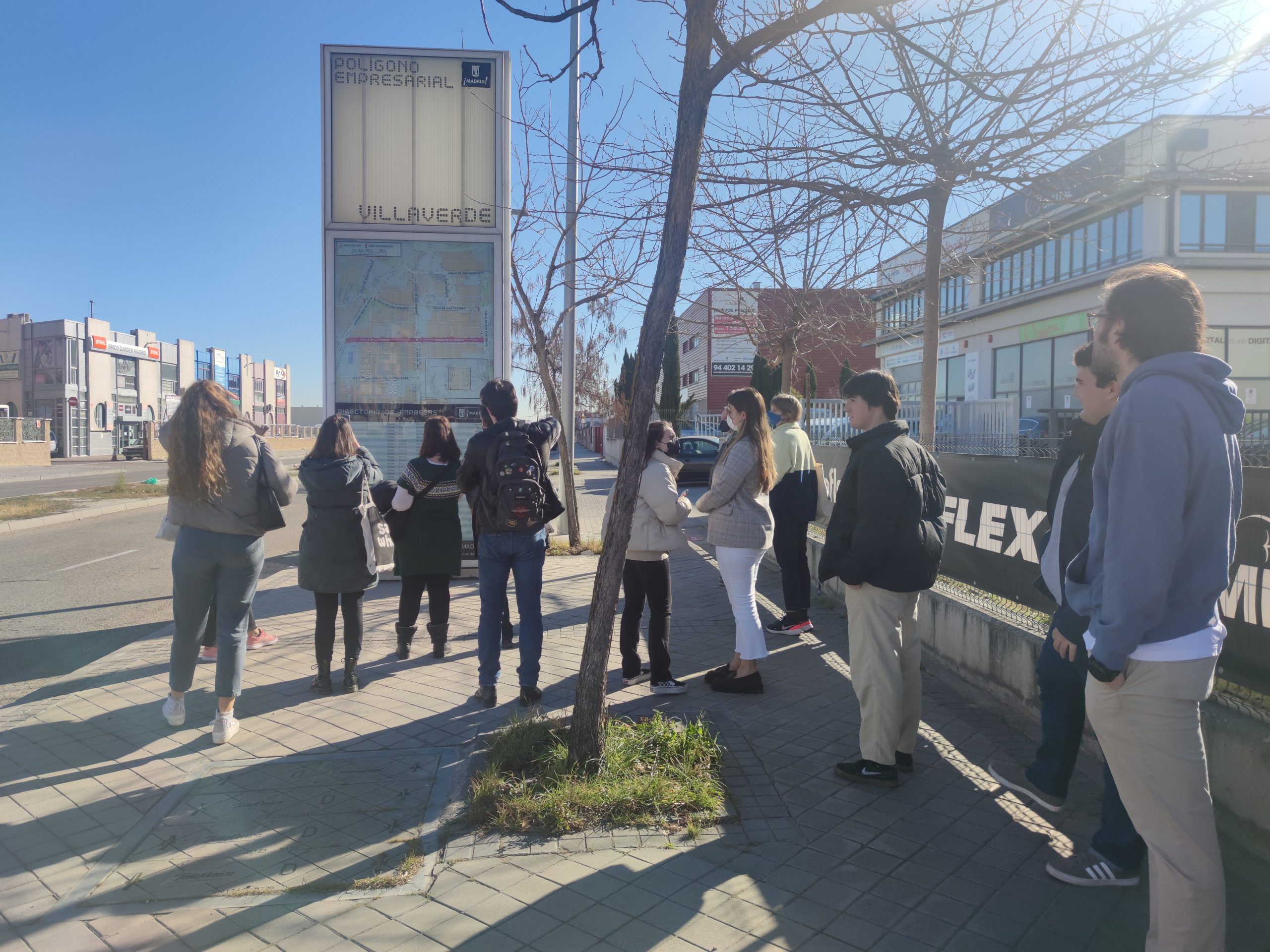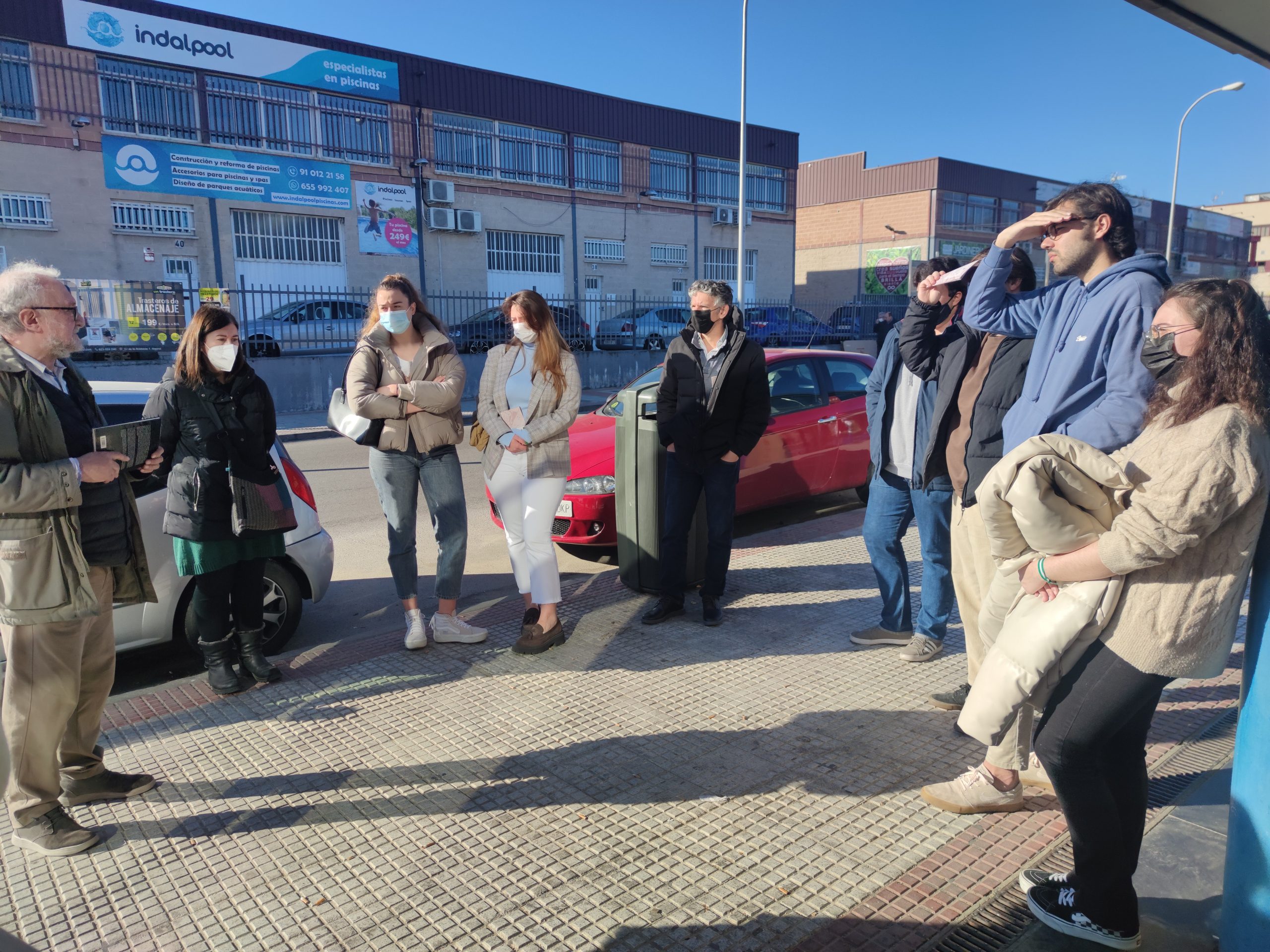 El grupo de la asignatura Estudios urbanos y territoriales I visitó el lunes 21 de febrero el distrito de Villaverde, en especial la zona del Polígono Industrial de Villaverde y la Colonia Marconi, sobre el que versarán las prácticas de curso de la asignatura de la profesora Alexandra Delgado.