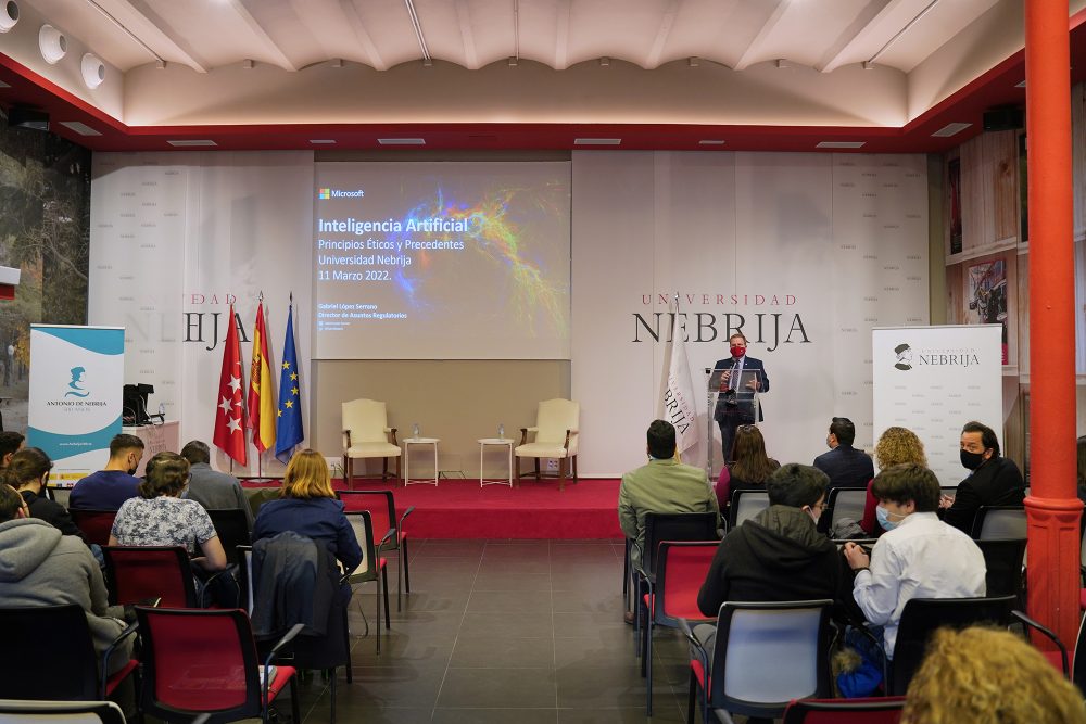 La tecnología que está detrás de la Inteligencia Artificial son los datos (personales, industriales, etc). Y esos datos son “la base de la economía y el desarrollo del futuro”. Así lo afirmó Gabriel López Serrano, director de Asuntos Regulatorios de Microsoft, que ofreció una charla organizada por el área de Empresa de la Facultad de Ciencias Sociales de la Universidad Nebrija.