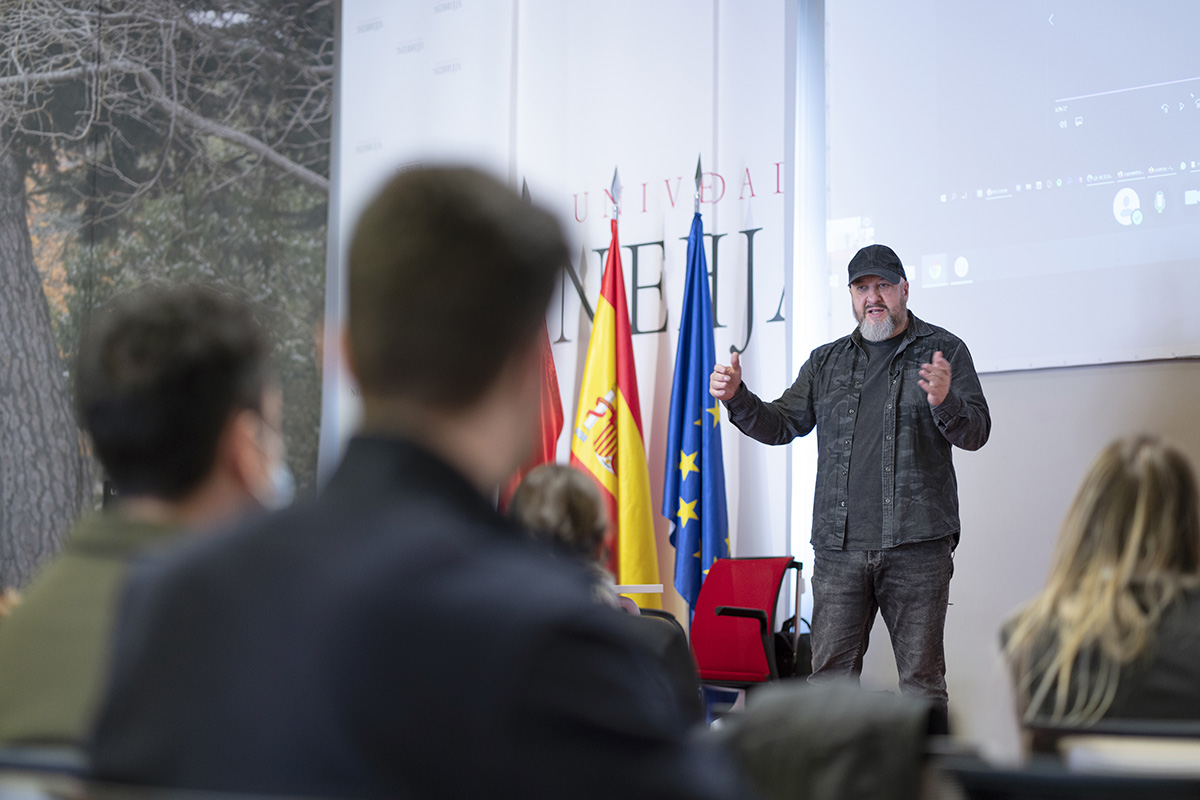 Hay música en publicidad que nos sirve para identificar una marca. Basta escucharla para reconocer a ese supermercado o esa cadena de comida rápida. En otros casos no se busca esa identificación, pero sí que la melodía acompañe y enriquezca el mensaje que se quiere lanzar. Eso es el music branding, estrategia en el ámbito de la publicidad y del marketing que desgranó el productor musical Mark Janipka ante los alumnos. También técnico de sonido y músico, ha trabajado en publicidad para marcas como Vodafone, Coca Cola, Opticalia, Ford, Turespaña.
