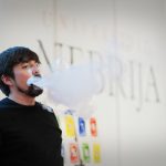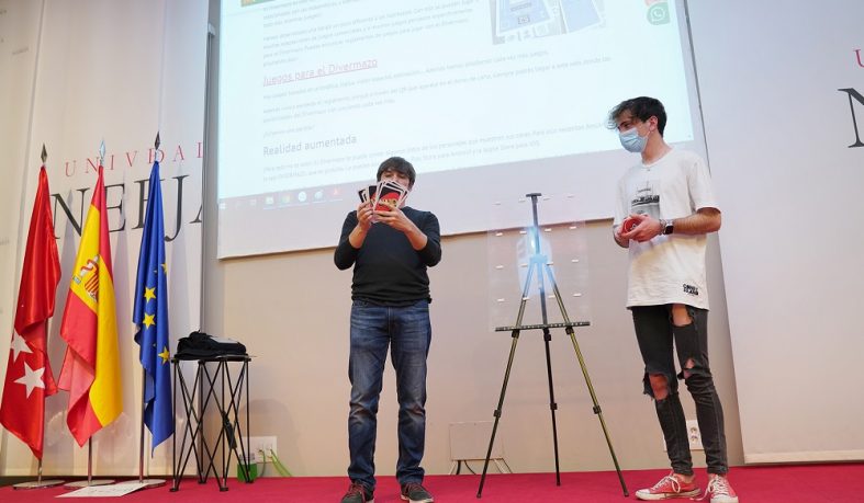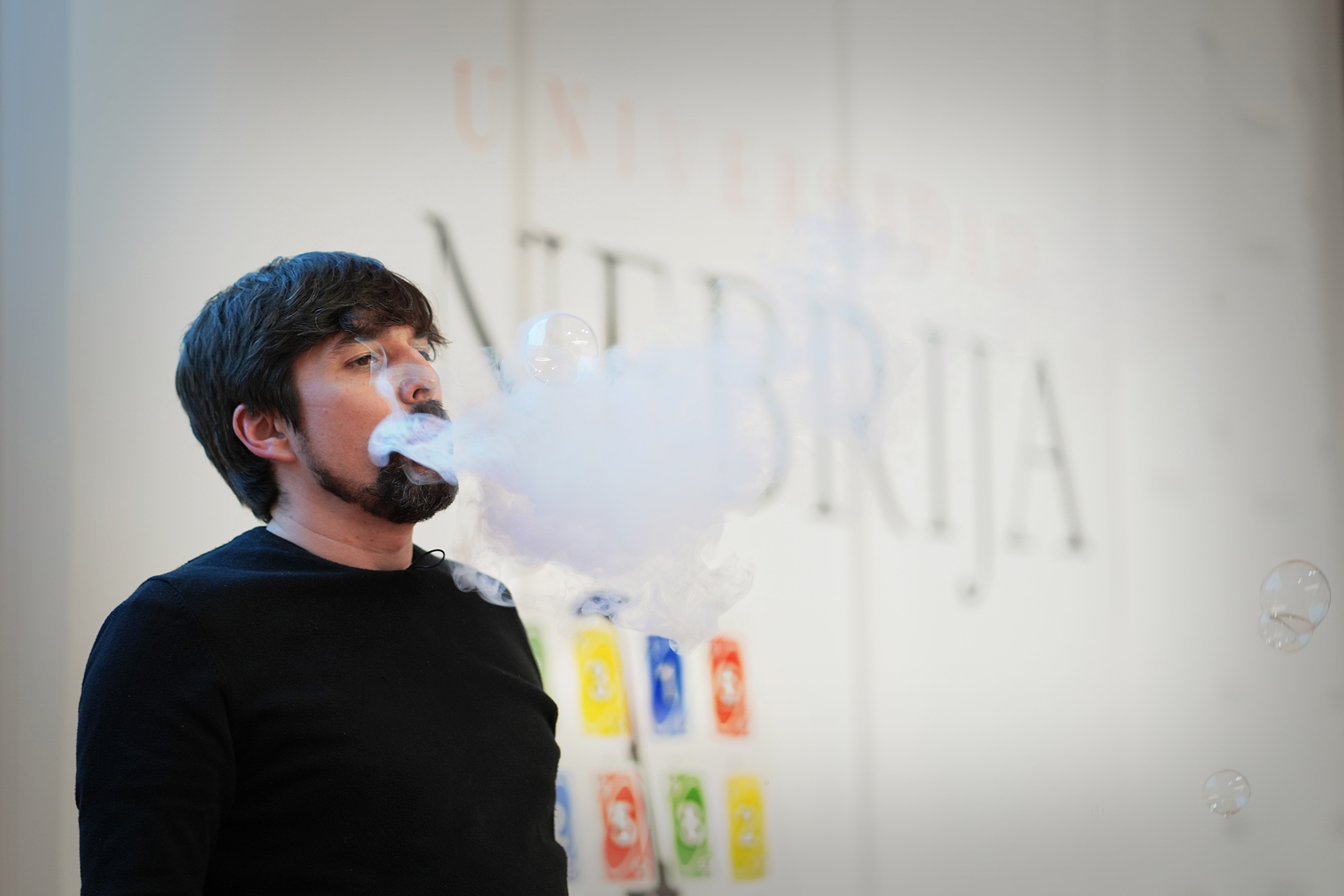 La magia y los juegos matemáticos culminaron la jornada Libros, mates y mucho más. Divulgar las matemáticas por todos los medios. Nelo Maestre, profesor de la Universidad Complutense y de la Universidad Nebrija y mente pensante de Divermates, desplegó todo un abanico de ingenio y trucos “para trasmitir esa fascinación por las matemáticas y para que la gente juegue y llegue a ellas divirtiéndose”. Con herramientas como el divermazo, una baraja de 72 cartas con multitud de posibilidades, Maestre sacudió la curiosidad de los estudiantes que llenaban el salón de actos.