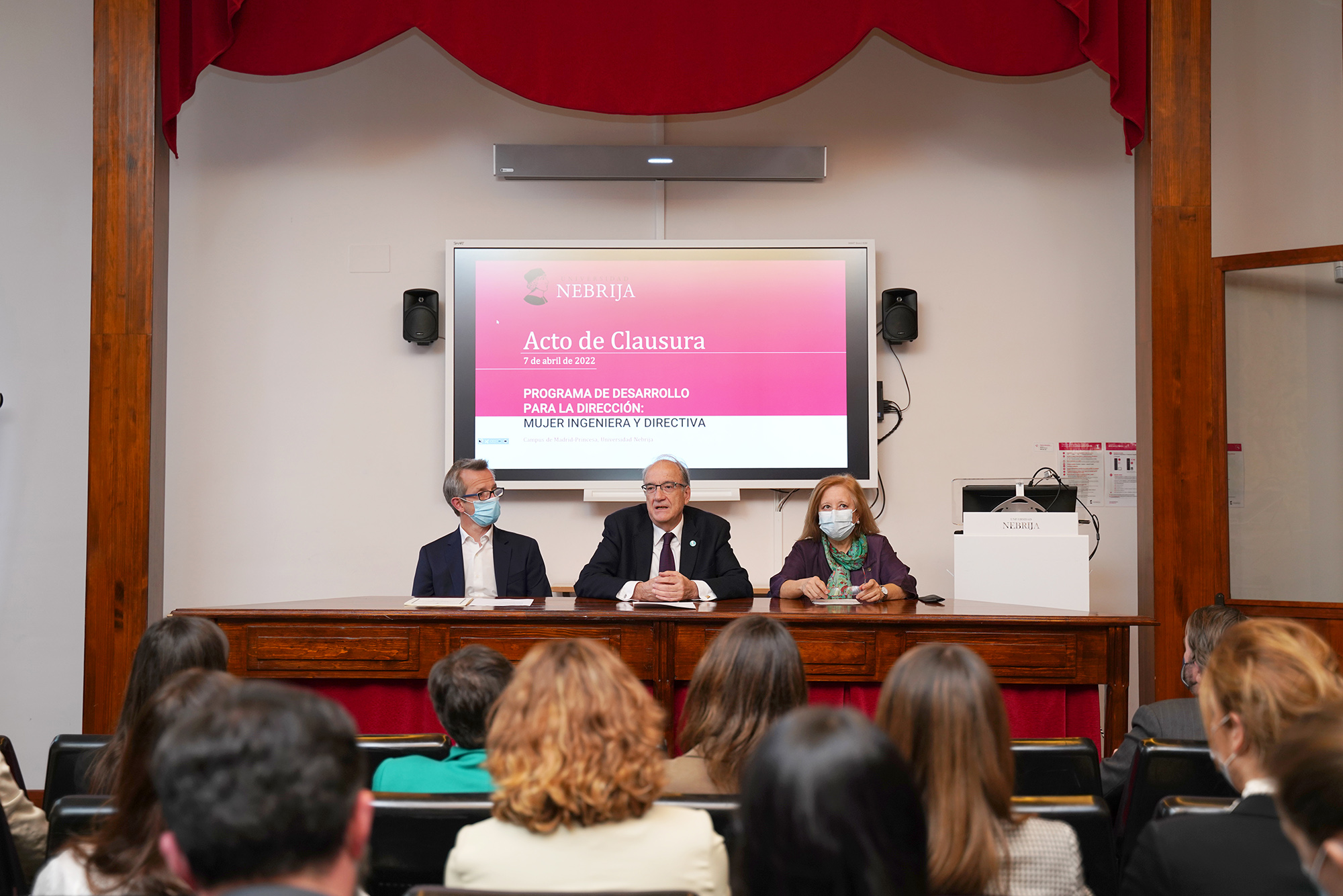 El Programa de Desarrollo para la Dirección: Mujer Ingeniera y Directiva, promovido por la Universidad Nebrija y patrocinado por la Fundación Talgo, tocó a su fin después de seis meses de esfuerzo y 284 horas de sesiones presenciales y virtuales. Las diez participantes de empresas como Navantia, Grupo Antolín, Red Eléctrica Española, Teléfonica y Talgo recibieron los diplomas de mano de Borja González del Regueral, director de Nebrija Business School, en un acto emotivo y de reivindicación de la presencia femenina en los altos cargos de las empresas.