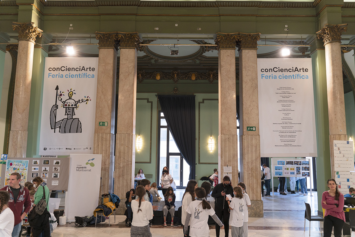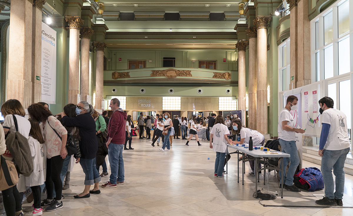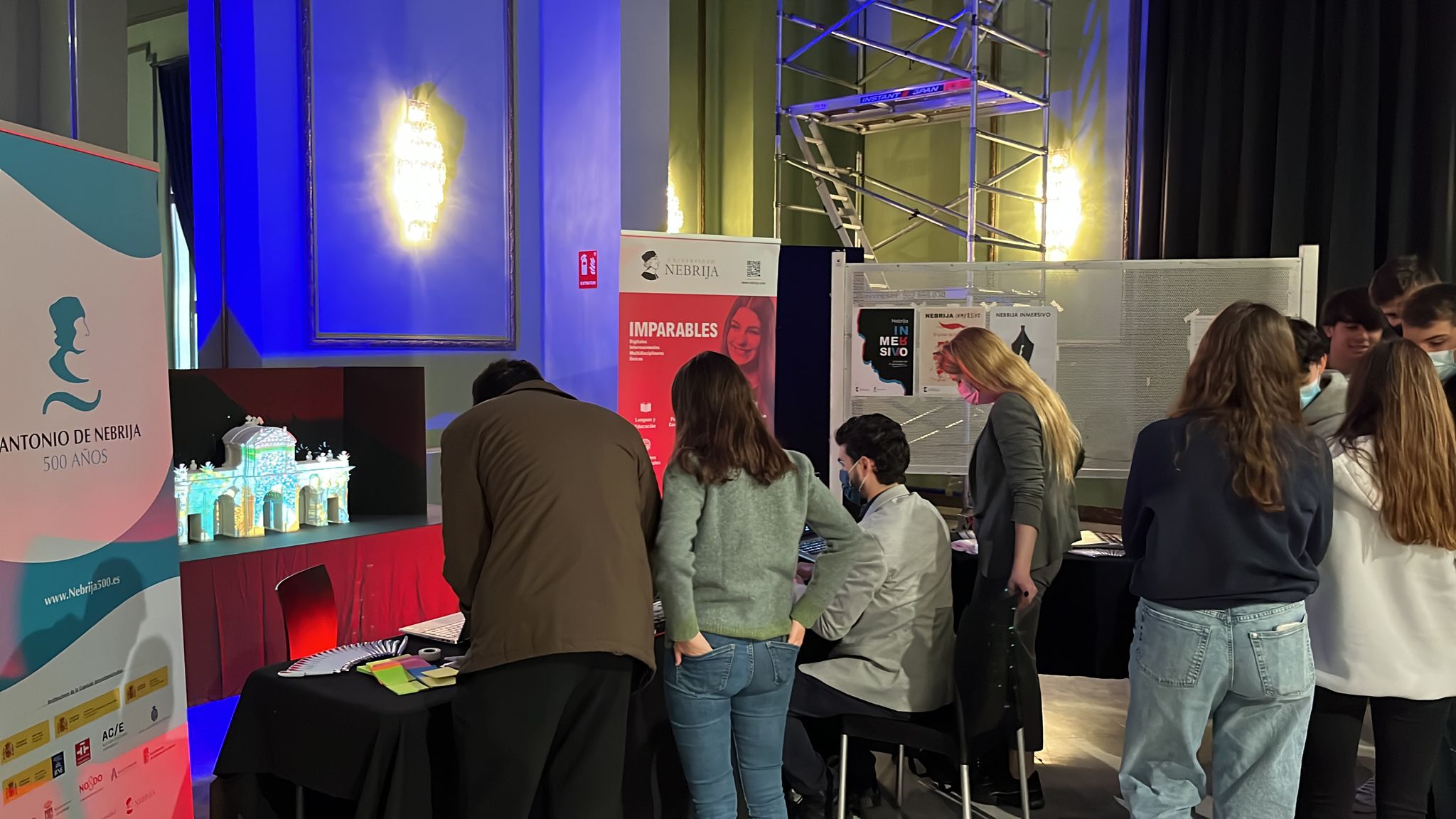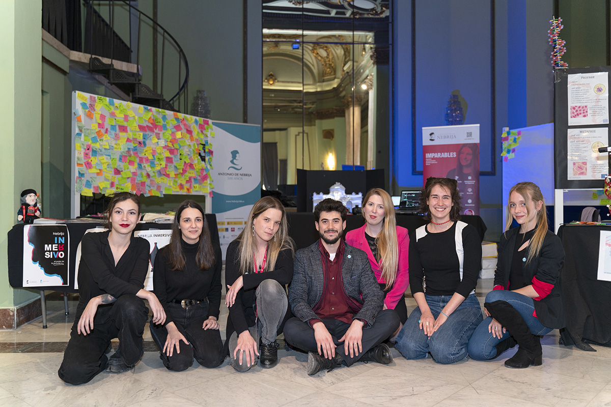 El Círculo de Bellas Artes acogió los días 21 y 22 de abril una nueva edición de ConCienciArte, una feria que fomenta proyectos que vinculan la ciencia y las artes. Uno de ellos, Nebrija Inmersivo: el poder de la palabra, ideado por alumnos y profesores del Grado en Diseño Digital y Multimedia, despertó curiosidad entre los estudiantes de colegios e institutos que visitaron esta cita cultural en la que colaboran FECYT, Fundación madri+d , FUHEM, SM y Cooperativa de Enseñanza José Ramón Otero.