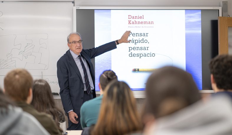 En los prolegómenos de su presentación, quiso dejar claro que la razón de ser de la psicología se resume en que el comportamiento humano no es lógico, sino psicológico. También hizo acopio de citas, como la del físico y matemático Lord Kevin, que en el siglo XIX ya preconizaba que “lo que no se mide, no se puede mejorar”, de lecturas como Pensar rápido, pensar despacio, del Premio Nobel de Economía Daniel Kahneman, y de los consejos para que los jóvenes lean más expresados recientemente en los actos de Nebrija por el filósofo Emilio Lledó y la periodista Mercedes Milá.