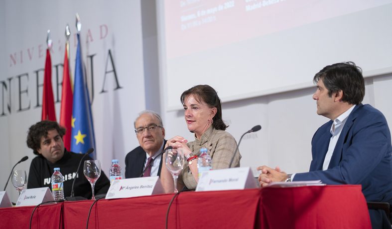 Precisamente, José Muñiz, rector de la Universidad Nebrija, relacionó al humanista con la arquitectura y el diseño: “Nebrija es el padre de la gramática, considerada “la arquitectura del lenguaje”, y un sabio “preocupado por el diseño de los caracteres de la imprenta”. A su juicio, la Universidad Nebrija es “una casa sensible a estas cuestiones”, a la armonía entre lo viejo y lo nuevo y a la belleza. “Aunque incorporamos en la actualidad la sostenibilidad y la inclusión, en la Universidad somos muy de Vitruvio”, comentó. Mª Ángeles Benítez Salas, directora de la Representación de la Comisión Europea en España, aprovechó la alusión al arquitecto romano del siglo I a.C. para demostrar que los tres principios de la arquitectura por él preconizados –venustas (belleza), firmitas (firmeza) y utilitas (utilidad)- se pueden aplicar perfectamente a la Nueva Bauhaus Europea.