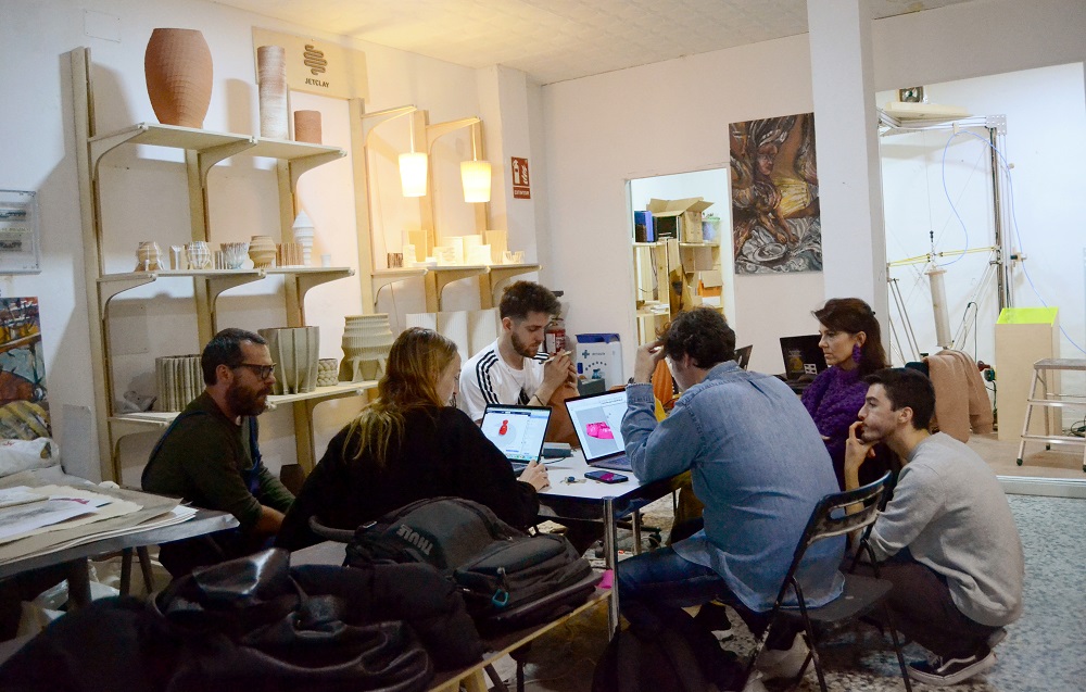 El profesor José Real, del Club de Diseño, organizó un taller de impresión 3D en cerámica con Japi Contonente, de Jetclay, en el Espacio Labbrut de Madrid, en el que contó con la profesora Cova Ríos como invitada.