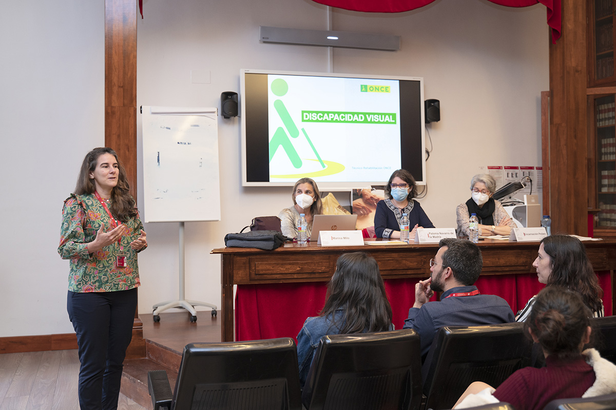 Encarnación Peláez explicó el proceso que una persona vive cuando pierde la visión, o parte de ella. “Nuestro sistema de supervivencia busca la información que necesita todo el rato a través de distintos sentidos. Cuando le falta información nos provoca el miedo, la inmovilidad, la paralización. Cuando una persona invidente nos dice que se queda paralizado por el miedo nosotros le explicamos que es porque su cerebro le falta información, pero la palabra clave es decir por ahora, porque acabarás teniendo esa información de otra manera”, explicaba la psicóloga de la Delegación Territorial de la ONCE en Madrid.