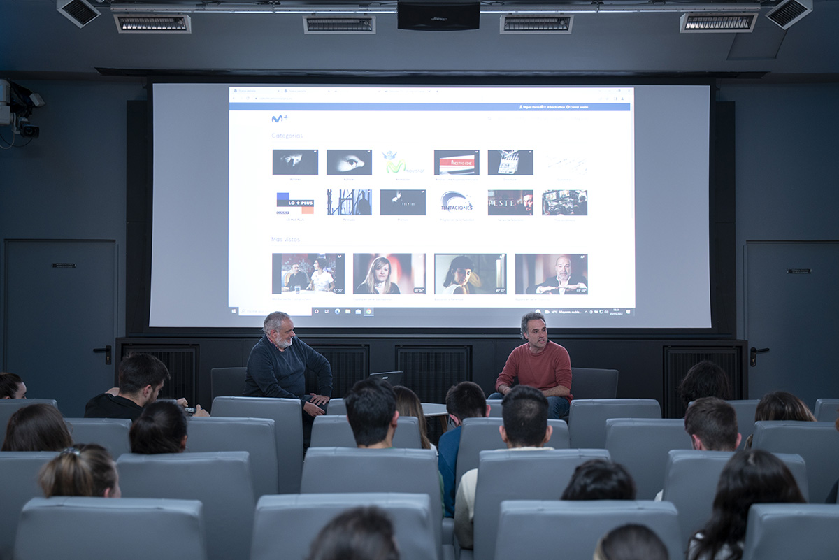 La última de las preguntas de los estudiantes de Nebrija fue encaminada a la situación actual del sector audiovisual, en auge con la aparición de nuevas plataformas de streaming y con un catálogo de películas y series cada vez mayor. Precisamente en esa oferta tan amplia reside uno de los contrapuntos del nuevo escenario audiovisual según afirmó Guzmán, y es que “ahora no solo se trata de hacer una película que conecte con el público, sino de que la vean entre tanto contenido”.