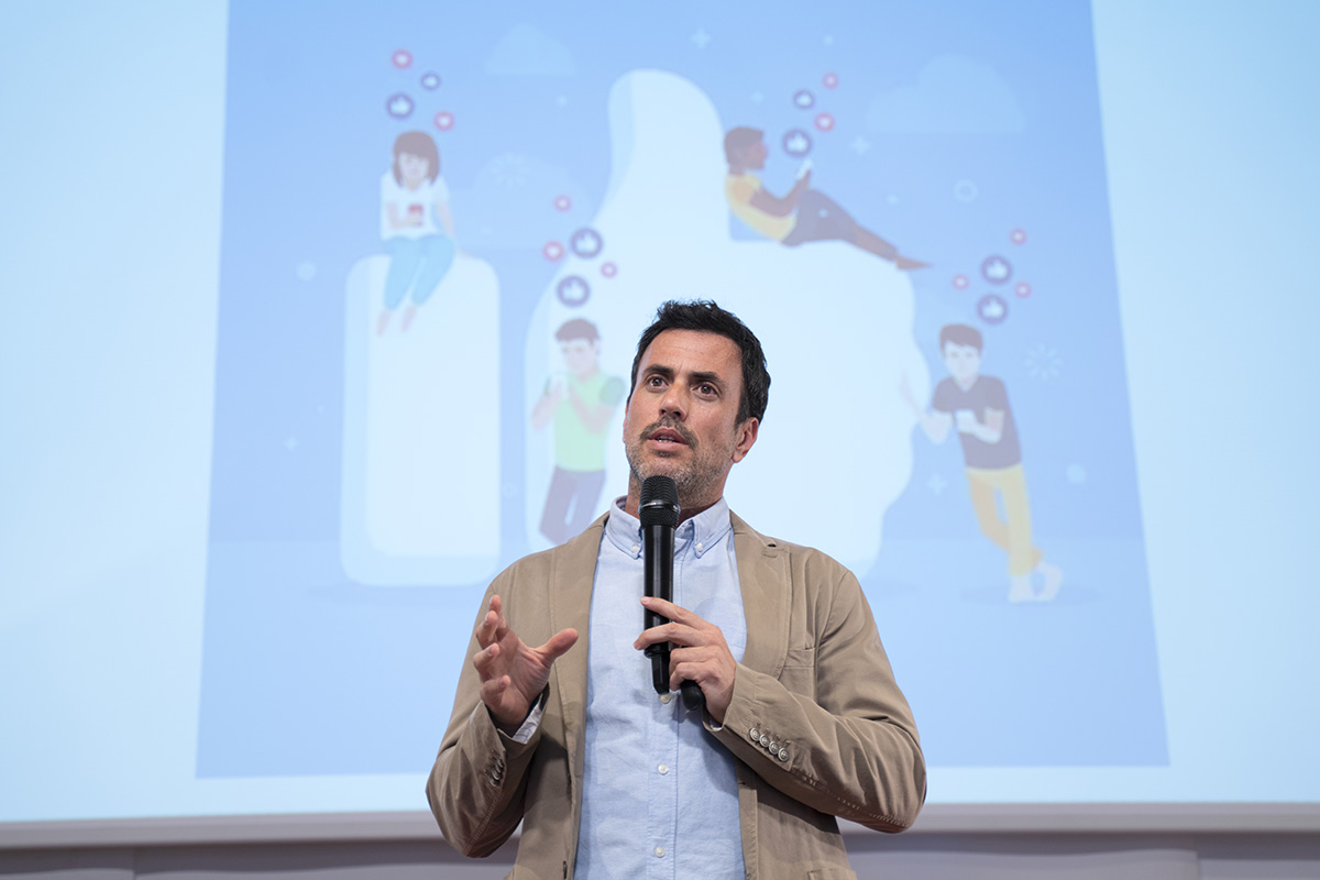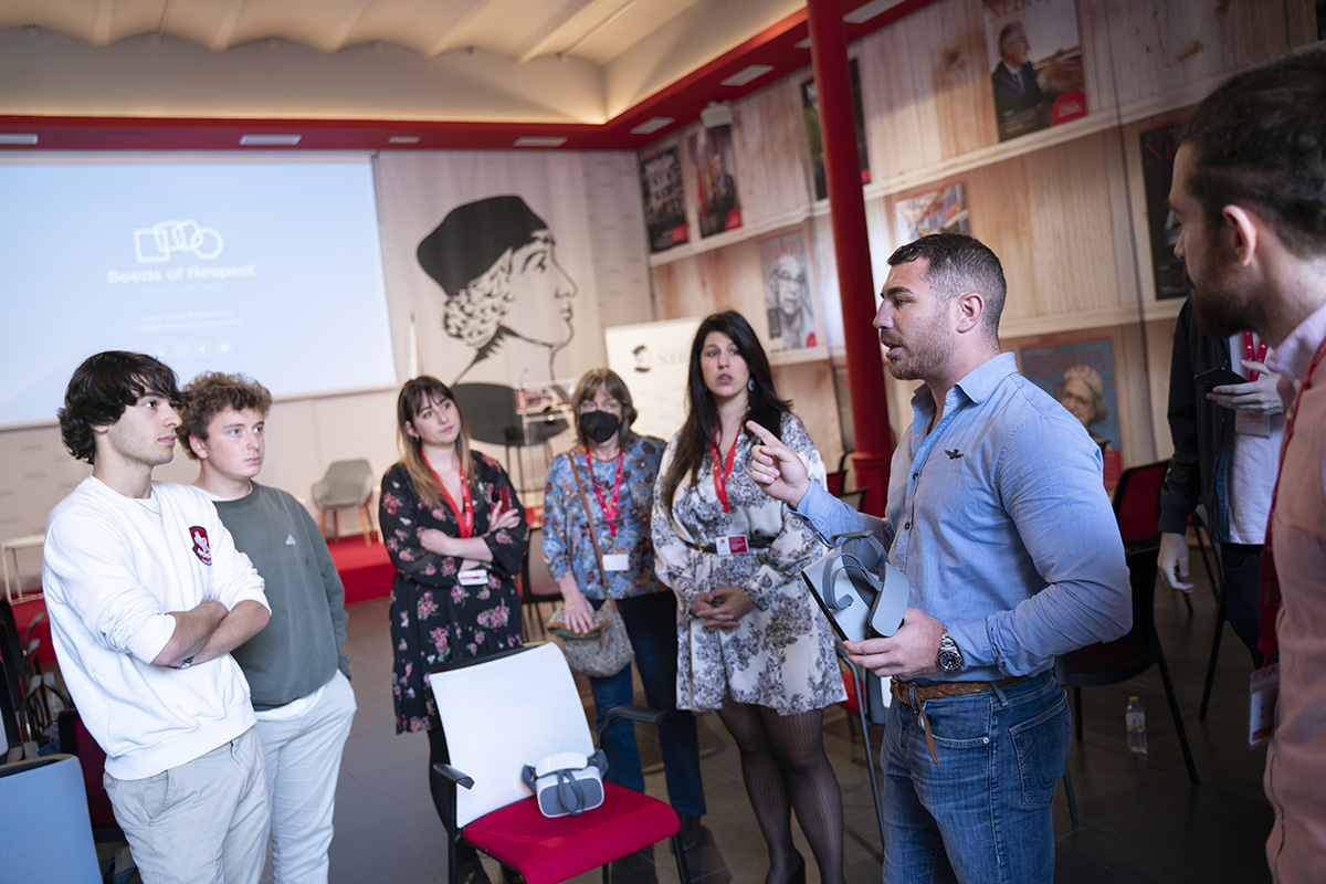 Acto seguido, el psicólogo Antonio Bernal presentó Seeds of Respect, una empresa que usa la realidad virtual en talleres para la educación en el respeto y los tratamientos de salud mental. Con un práctica en el que los presentes se pusieron las gafas de realidad virtual para dar soluciones a problemas reales, los responsables de Seed of Respect defendieron la creación de estas experiencias de narrativa visual, “diseñadas con un alto impacto emocional”, que pueden ayudar a generar cambios de conducta. La concentración de la atención en este mundo inmersivo –sin distractores como el móvil- o la posibilidad de equivocarse sin consecuencias dramáticas son dos de las ventajas de la aplicación de esta técnica que explicó Antonio Bernal. Esta plataforma ya trabaja con centros educativos en el tratamiento virtual, con las gafas de realidad virtual, y de forma analógica, a través de unidades didácticas, de temas tan graves como el acoso escolar y la violencia de género.